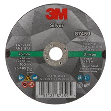 3M™ Silver Cut-Off Wheel, 87459, 36+, T1, 3 in x 0.06 in x 3/8 in, 50 ea/Case