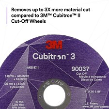 3M™ Cubitron™ 3 Cut-Off Wheel, 11150, 36+, T27, 4 in x 0.06 in x 3/8 in, ANSI, 2…