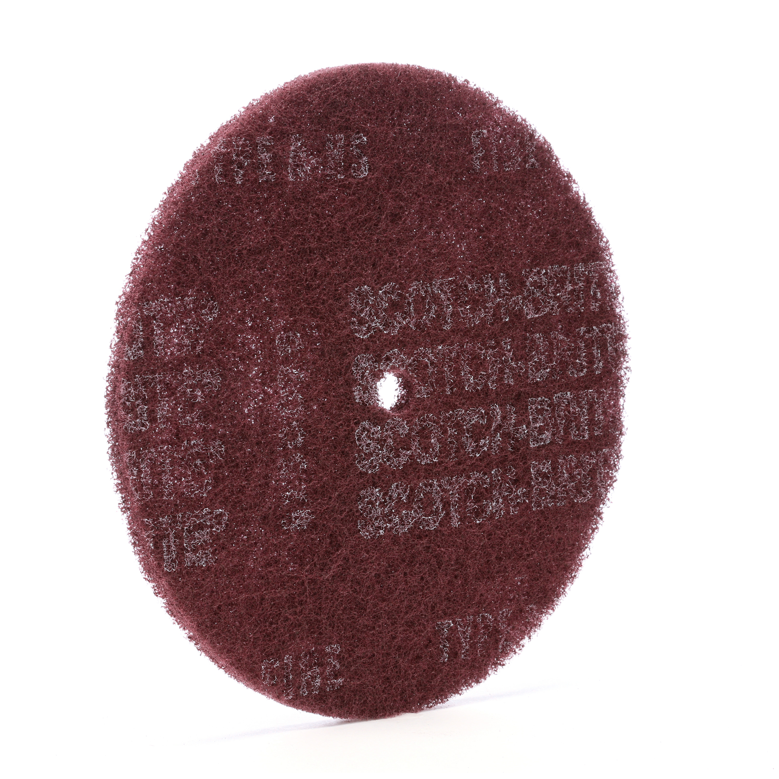 Conformability allows the Scotch-Brite™ High Strength Disc to work well on irregular surfaces and into tight areas without damaging the base material. This disc may be used individually or stacked on a straight shaft tool or bench motor to condition larger areas, bar grates, louvers, vents, and tracks.