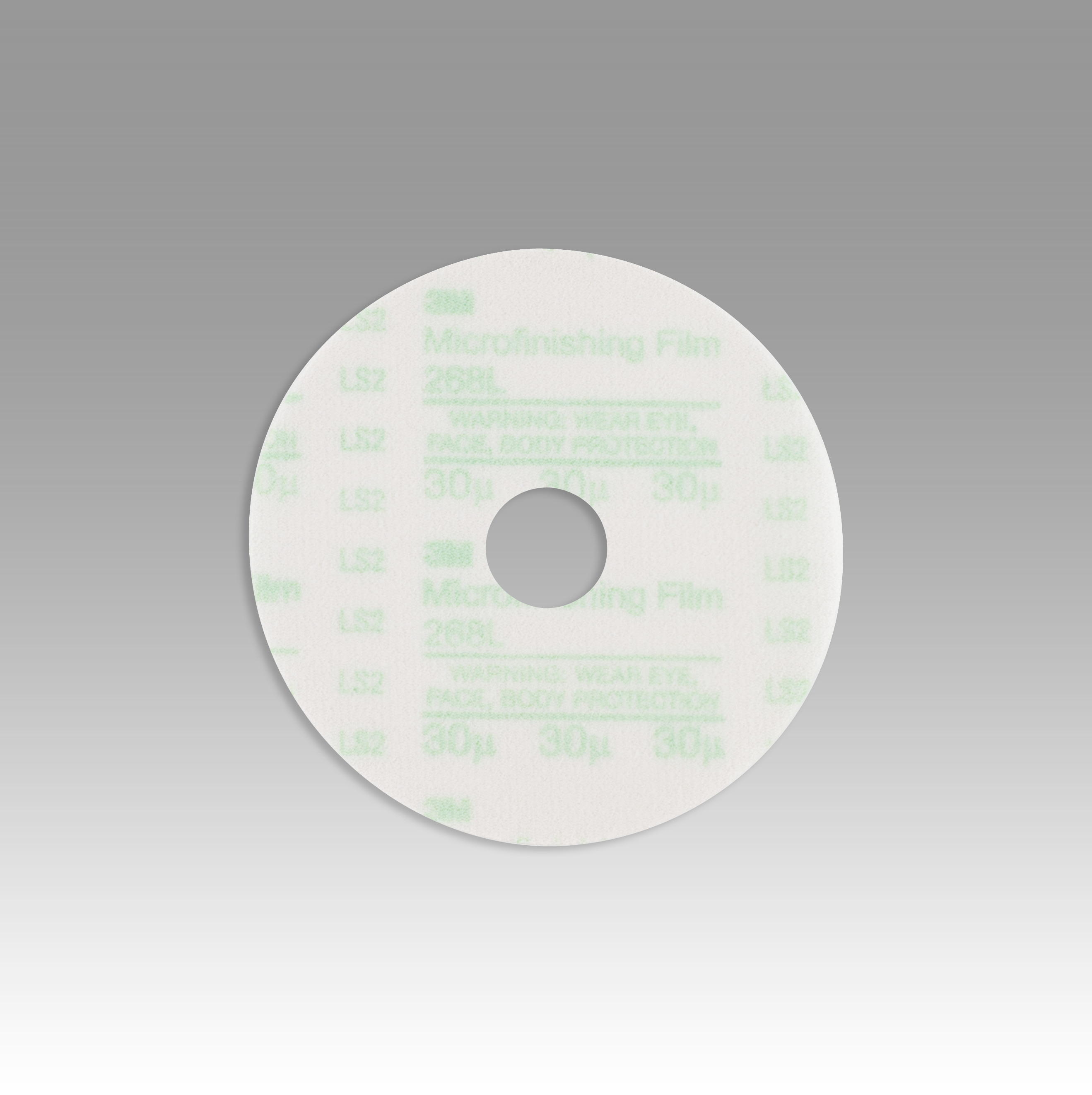 3M™ Hookit™ Microfinishing Film Disc 268L, 30 Mic 3MIL, Type D, 3 in x 7/8 in, Die 300M, 100/Carton, 1000 ea/Case