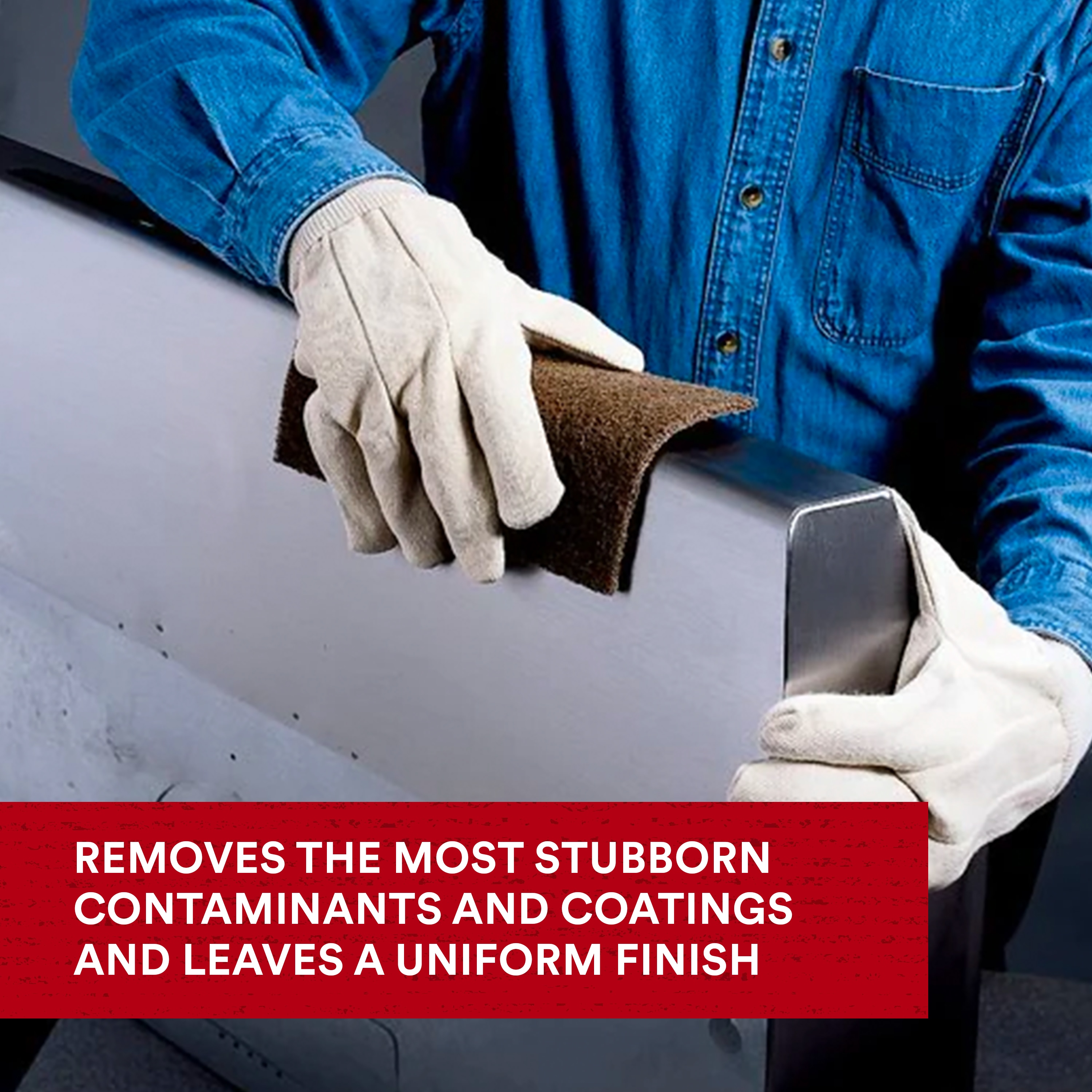 This super strong hand pad cuts through contaminants and oxides quickly and breaks down adhesive coatings with ease. As with other 3M hand pads, this tan heavy duty hand pad removes rust and grime and leaves behind a uniform finish on the surface of the workpiece so you can achieve a clean and consistent finish.
