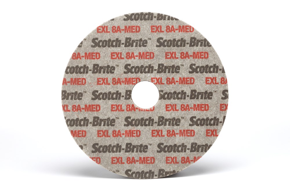 Scotch-Brite™ EXL Unitized Wheel is filled with abrasive minerals to quickly smooth edges of metal, plastic and composites. It is available with aluminum oxide in fine, medium, coarse and extra coarse grades, and silicon carbide in very fine and fine grades.