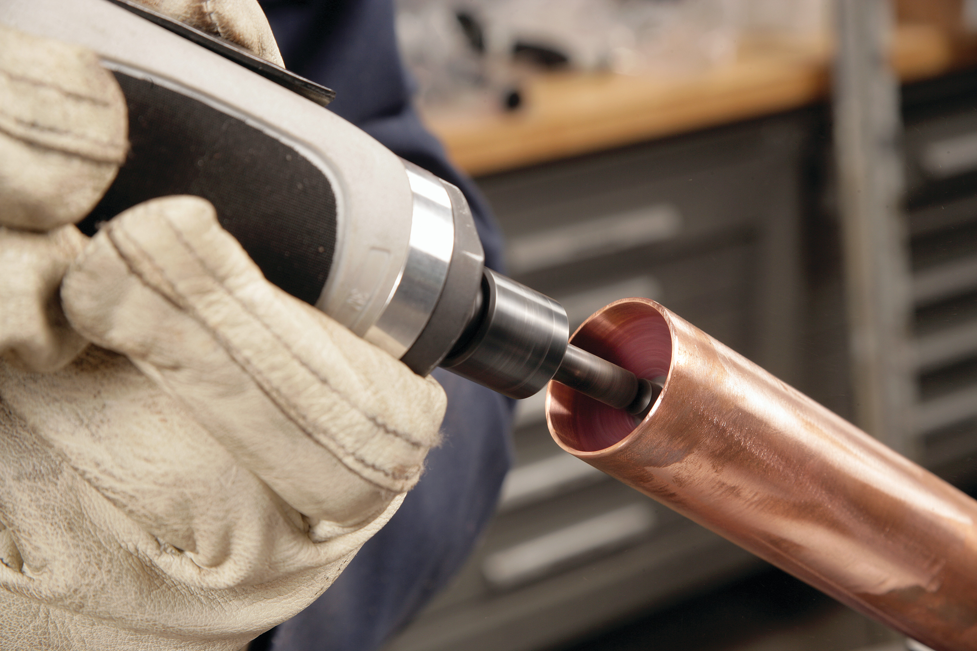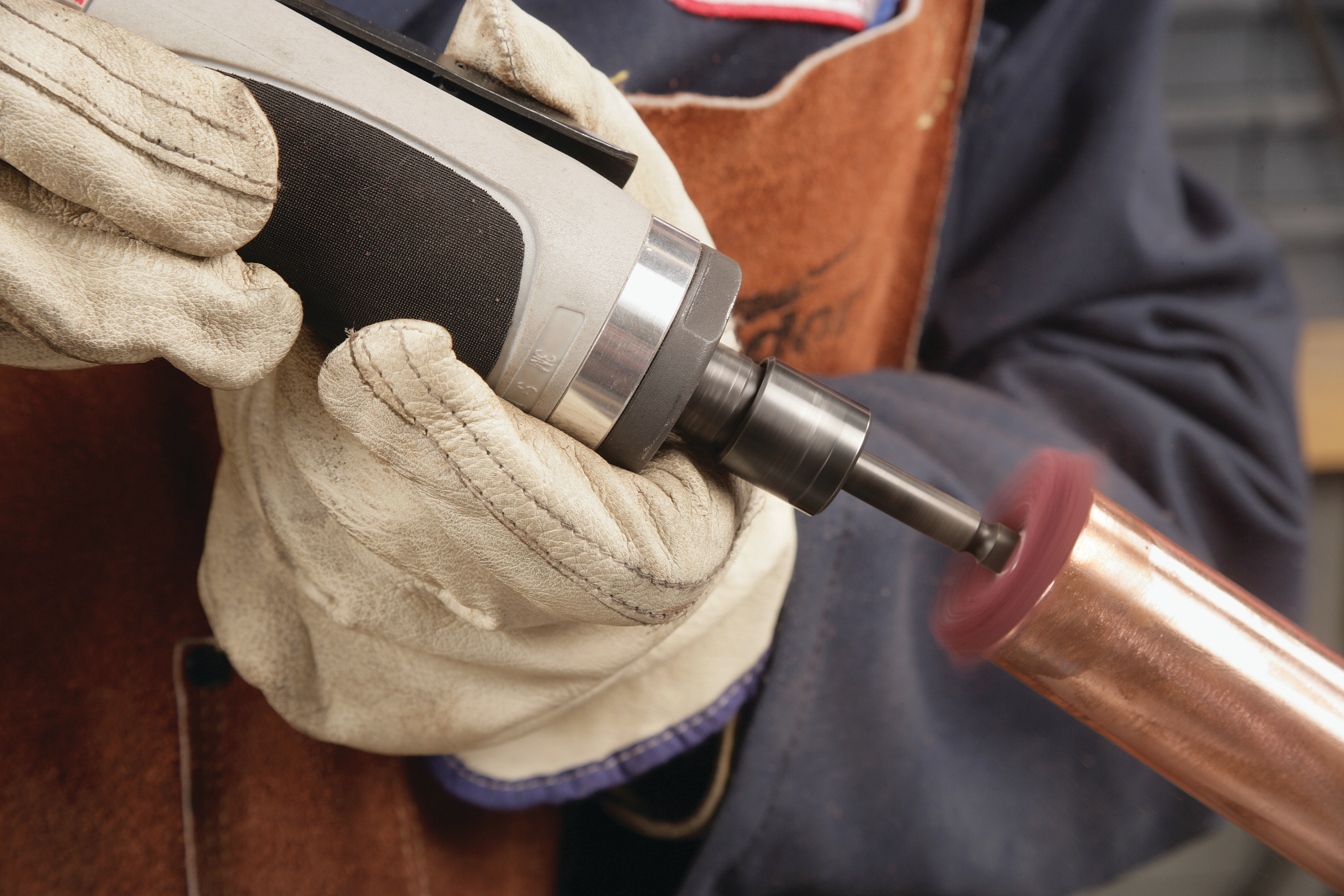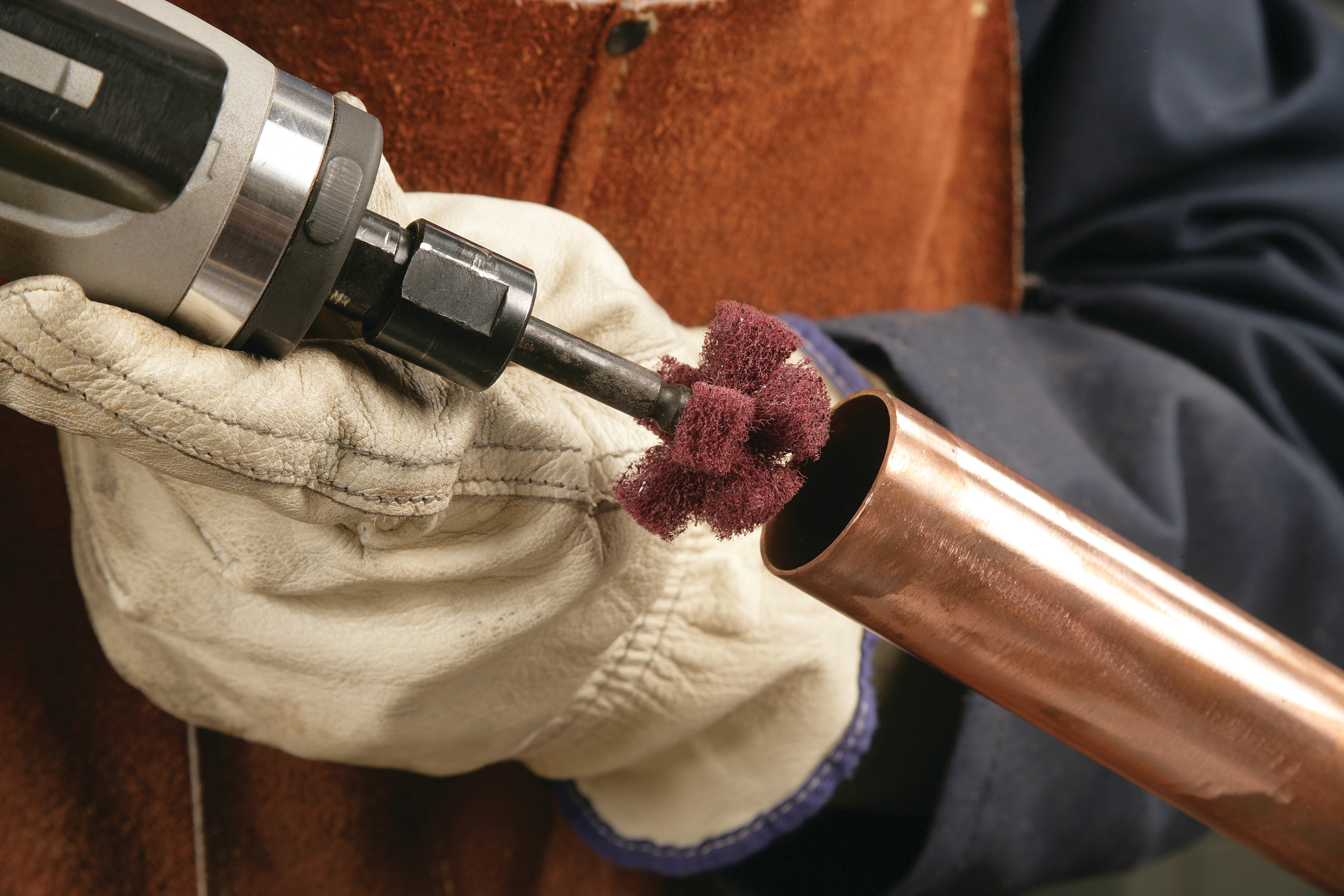The purple cleaning and polishing tool uses an aluminum oxide abrasive capable of producing a high luster finish. Aluminum oxide is a popular choice among industrial professionals because of its cut-rate and long life. This mineral is a tough, durable abrasive that self-fractures to expose fresh cutting edges in use, whereas traditional abrasives, such as garnet, quickly wear down with use. Due to its high cut-rate, hardness, strength, and low heat retention, aluminum oxide mineral is widely used in grinding applications in addition to sanding and finishing use. Aluminum oxide is suitable on a wide variety of substrates in both woodworking and metalworking, including ferrous alloys.