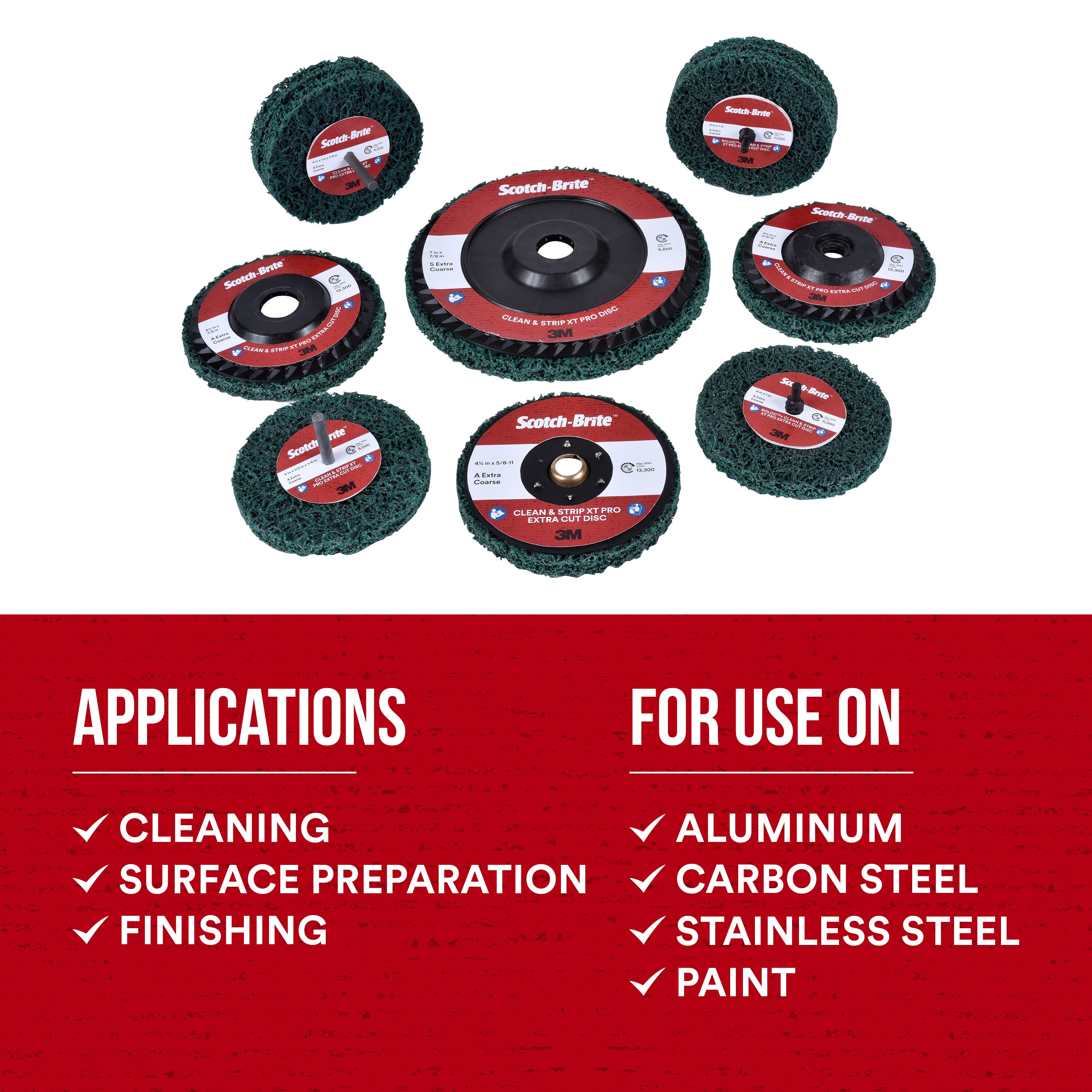Scotch-Brite™ Clean and Strip XT Pro Extra Cut TN Quick Change Disc, XC-DN, A/O Extra Coarse, Green, 4-1/2 inx5/8in-11, 10 ea/Case