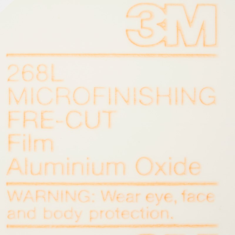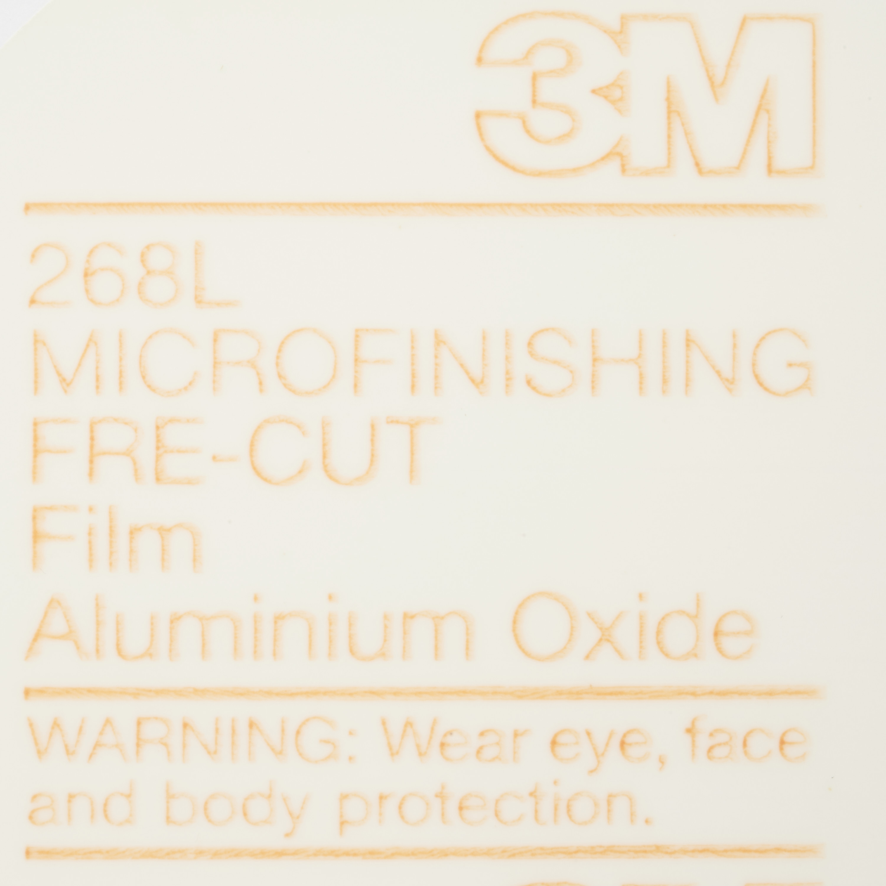 Achieve Close-Tolerance Finishes 3M™ Microfinishing PSA Film Roll 268L features precision, micron-graded aluminum oxide, resin-bonded to a high-strength polyester film backing to produce a fast cut-rate and precise, uniform finish on wood, solid surface composites, plastic, fiberglass, metals and in paint preparation. The film backing offers flexibility without sacrificing durability and reliable performance. To complement the effective abrasive action, the polyester film backing flexes to help achieve a consistent finish over contours and offers greater tear-resistance than comparable paper products, making it ideal for high-production environments.