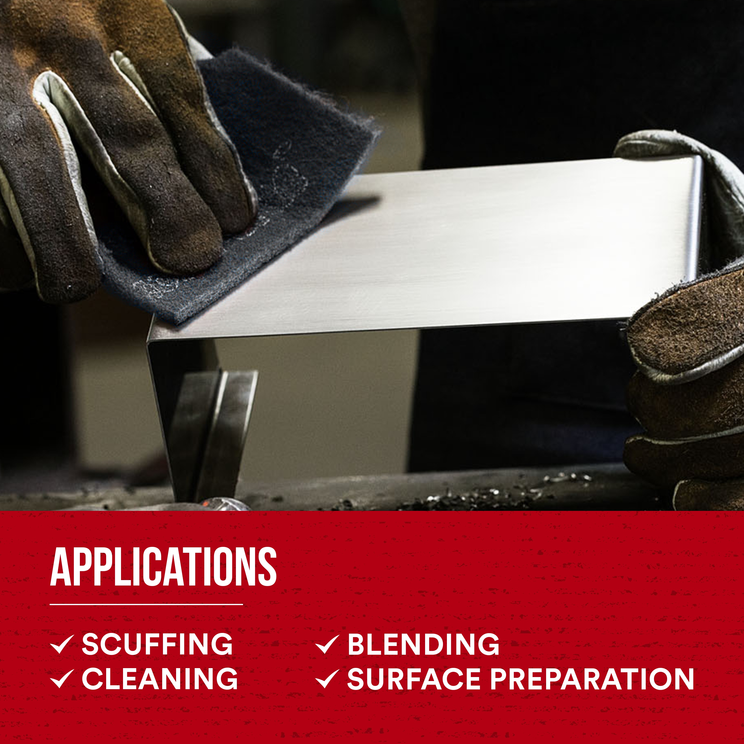Recommended applications include scuffing, cleaning, blending and surface preparation.