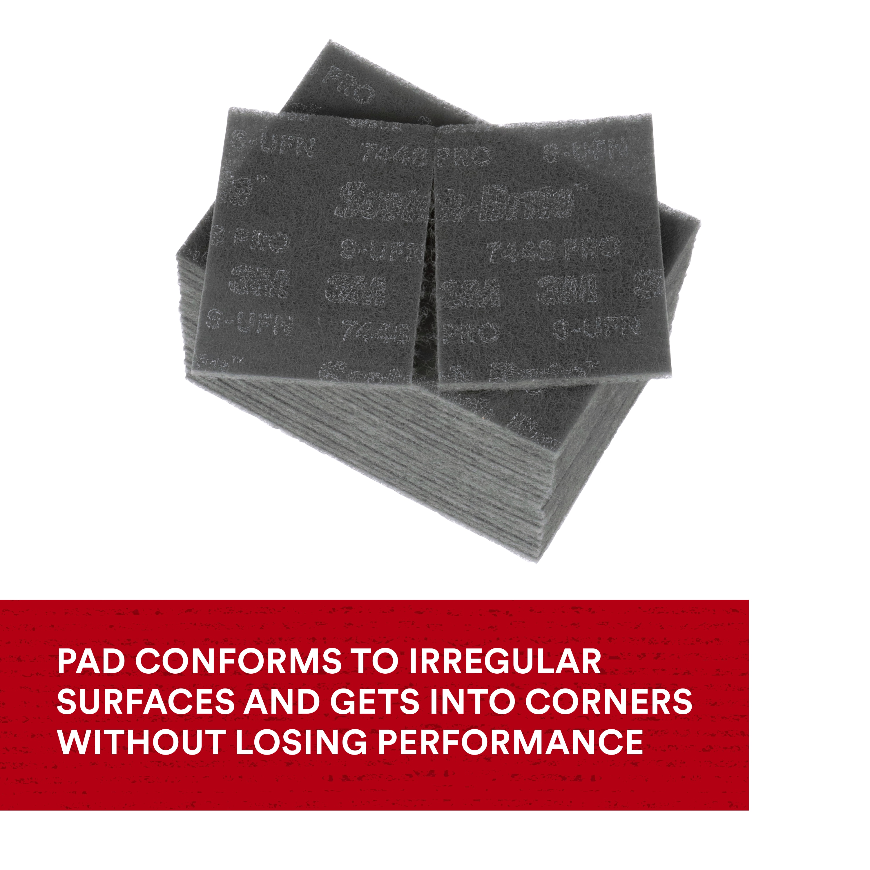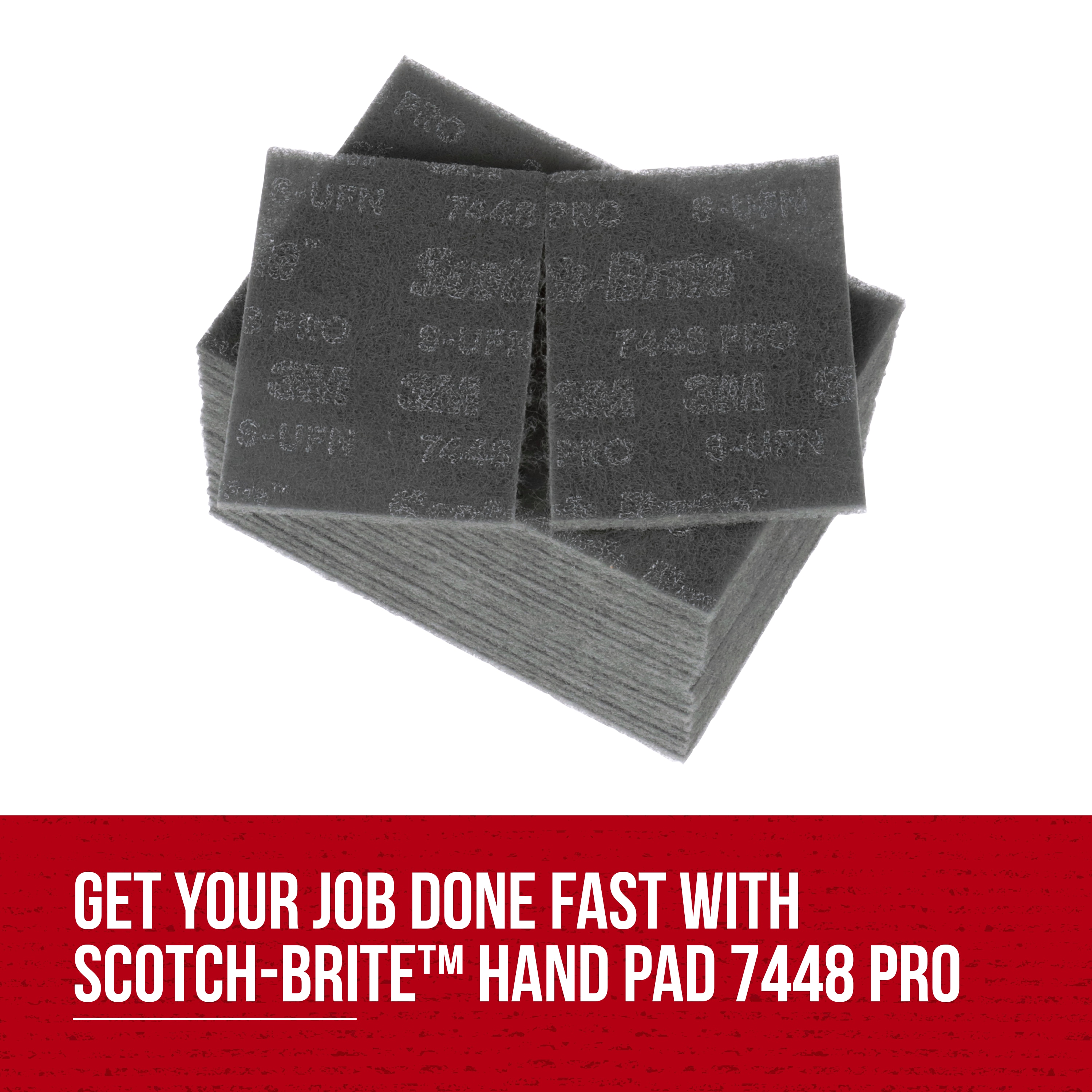 Scotch-Brite™ Hand Pad 7448 Pro, PO-HP, SiC Ultra Fine, Gray, 6 in x 9 in, 20/Carton, 60 ea/Case