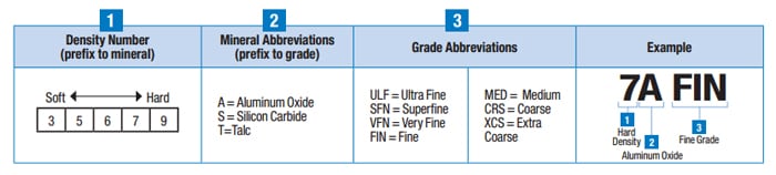 Four mineral variations of High Strength material exist: A VFN (very fine grade aluminum oxide), S VFN (very fine grade silicon carbide), A FIN (fine grade aluminum oxide) and A MED (medium grade aluminum oxide). Regardless of variation, the mineral is interspersed on non-woven nylon fibers using resin. The resin bond strengthens the abrasive, making it more tough and durable. The type of mineral and grade play an important role in determining the abrasive's aggressiveness. A VFN and S VFN minerals cut less aggressively and leave softer scratch patterns, making them good matches for moderate cleaning and surface finishing. A MED cuts more aggressively and leaves a coarser scratch pattern, making it a good match for heavy cleaning and setting finishes.