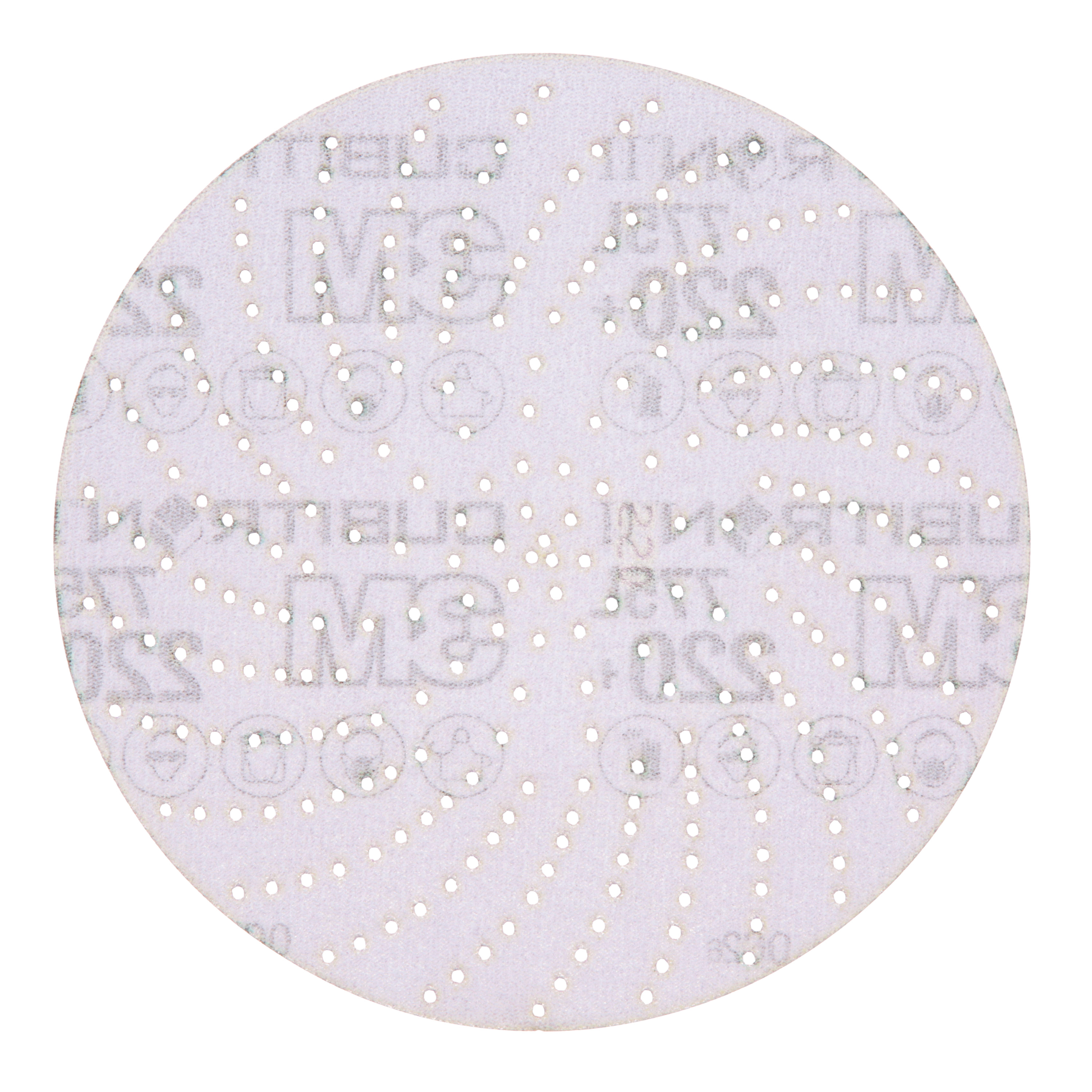 Sandpaper discs cut better and last longer when dust isn't loading the cutting surface of the abrasives. 3M's proprietary multi-hole pattern on Clean Sanding products evacuates dust at a higher rate than 5- or 6-hole products. This hole design doesn't require alignment of holes with the disc pad, making disc changes quick and simple. Open coat construction means the abrasive grains are placed with space between them to help evacuate dust and other sanding debris and avoid clogging the cutting edge of the grains. The load-resistant coating allows the disc to continue cutting even when sanding softwoods, paints, and other materials that would, otherwise, clog the disc and hinder sanding ability. All of this adds up to increased productivity and reduced material consumption. For maximum dust extraction, use this disc with a 3M™ Hookit™ Clean Sanding pad and a random orbital sander with vacuum (both sold separately).
