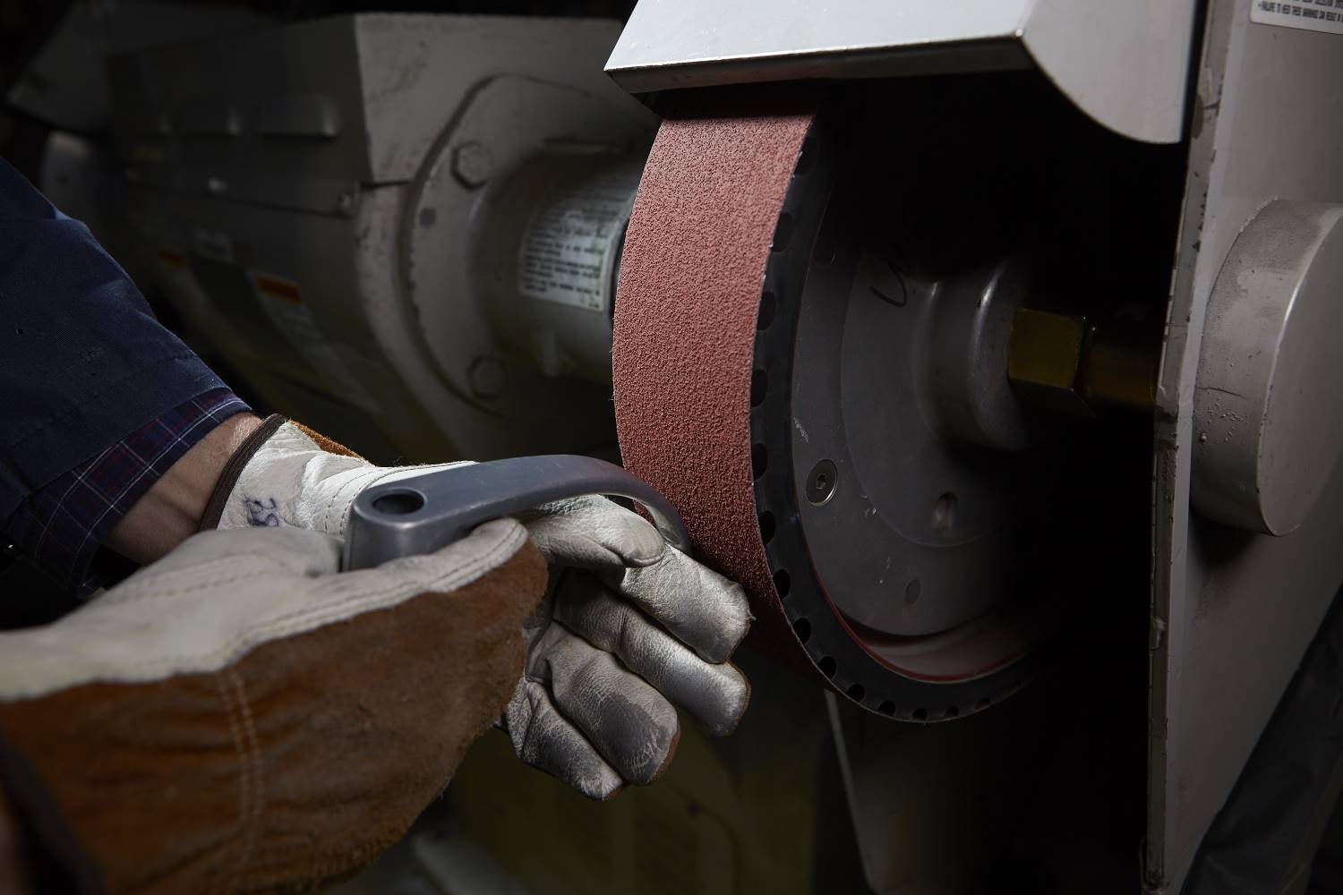 Suitable for use on a backstand or benchtop belt sander and for stroke sanding, portable belt grinding, and wide belt grinding and finishing