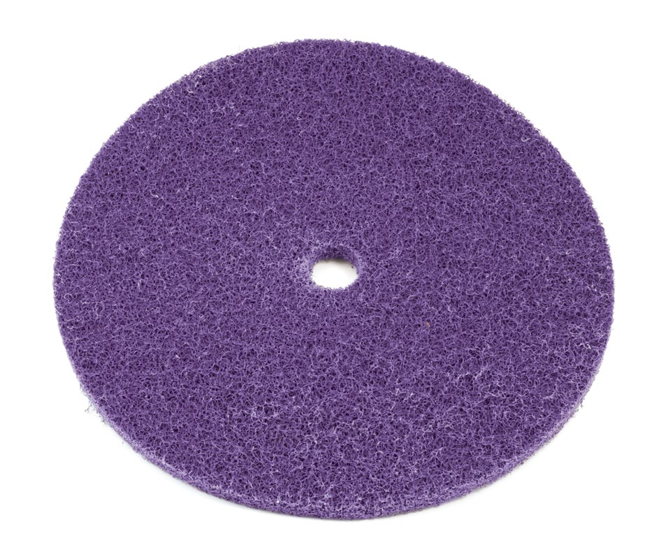 The Scotch-Brite™ HS Blend and Finish Disc won't sacrifice part geometry, and can be used with a bench motor, disc sander or die grinder to eliminate the effort of manual scraping. When the work surface requires broader coverage to reach intricate areas with the outer diameter of the disc, multiple discs can be stacked on a straight shaft tool or bench motor.