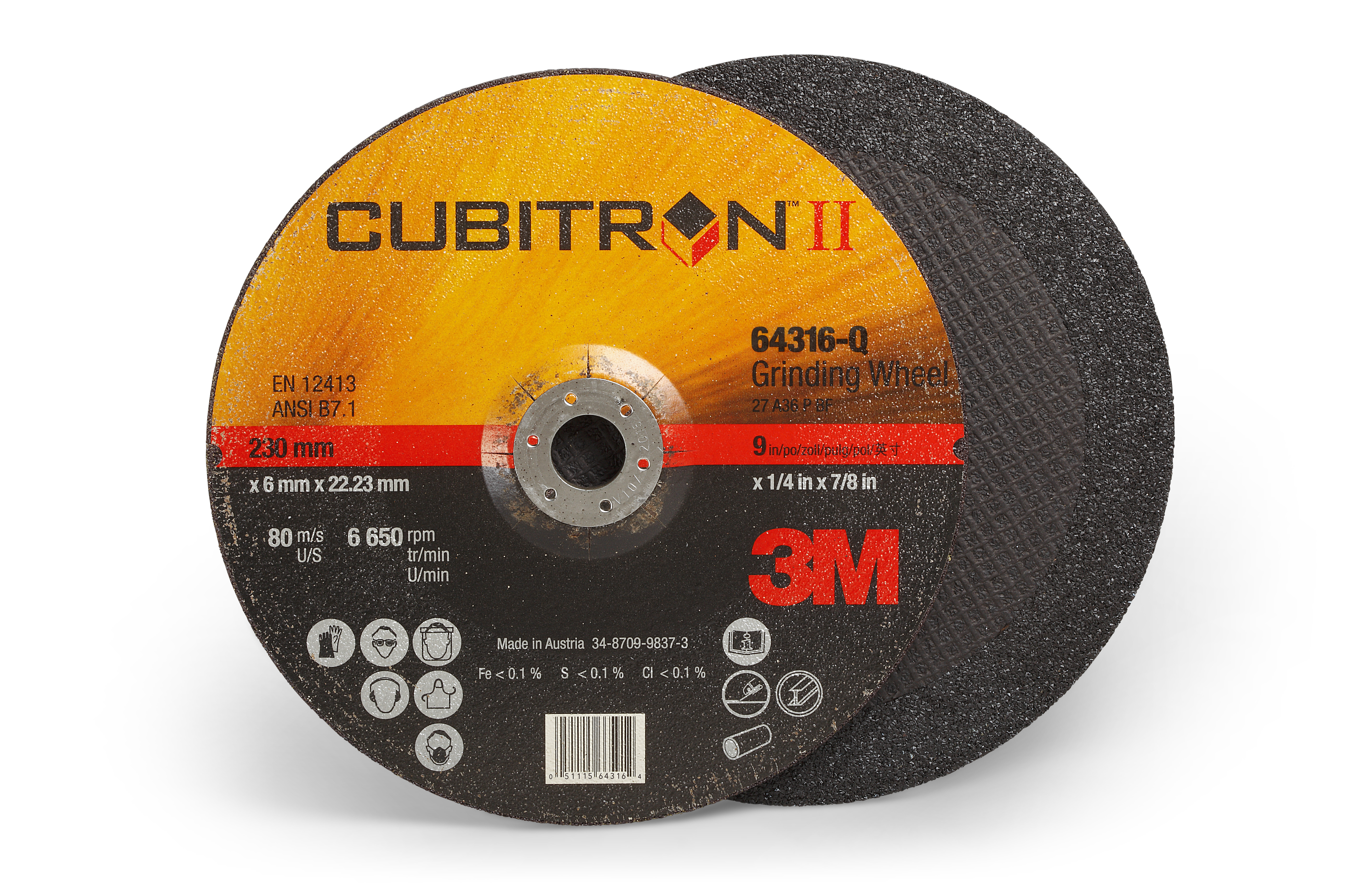 Cuts Fast and Cool 3M™ Cubitron™ II Depressed Center Grinding Wheel is built to perform at a level that surpasses competitive wheels in both cut and life to deliver significant gains in productivity. Experience the power of 3M Precision-Shaped Grain to provide a cool, extra-sharp, quick cut long after other wheels are consumed.
