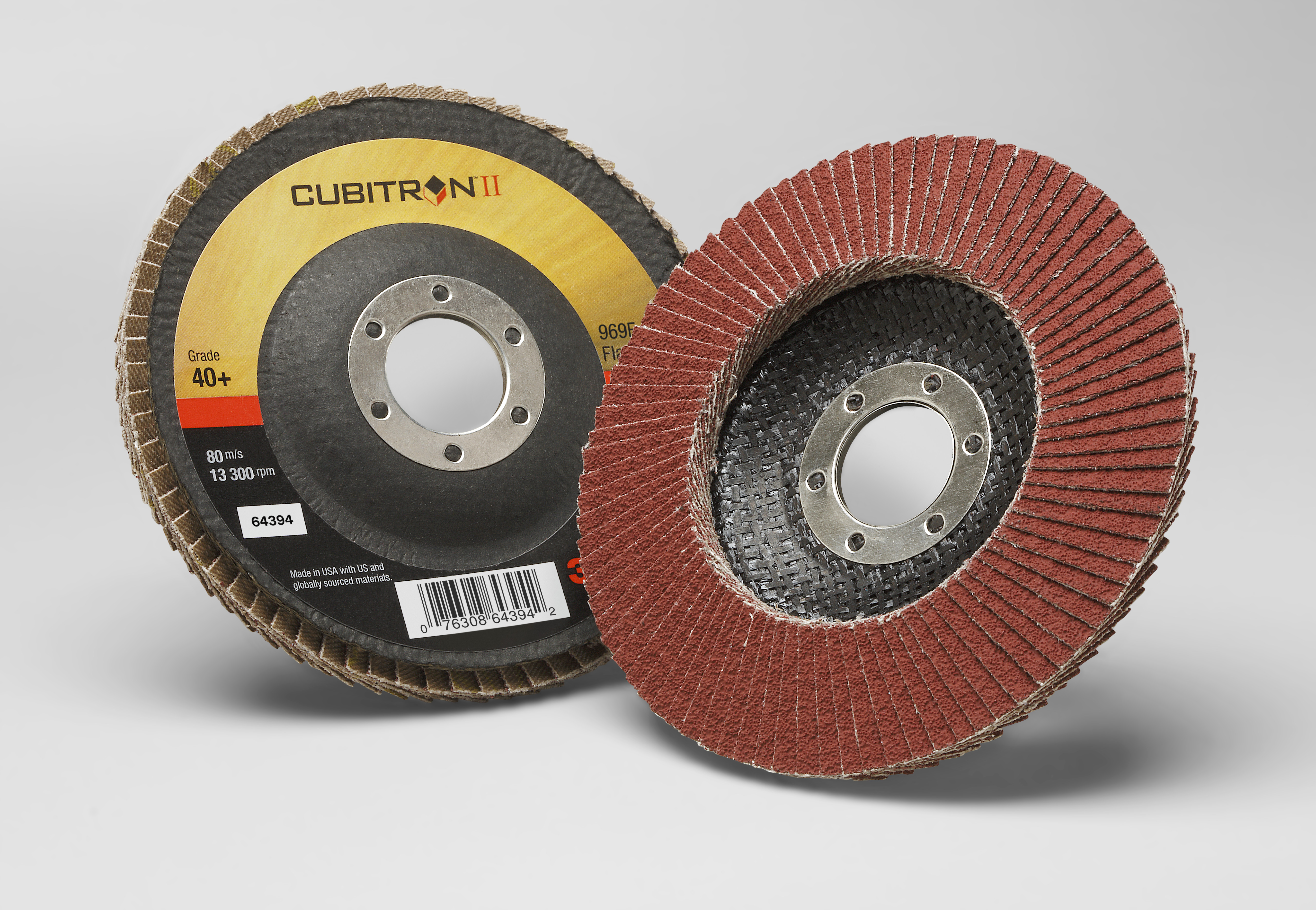 Keeps Cutting After Other Discs Quit3M™ Cubitron™ II Flap Disc 969F – powered by 3M Precision-Shaped grain and a tough polyester backing – is the highest-performing 3M flap disc for demanding applications like heavy grinding, edge deburring and beveling. It also features a grinding aid that helps it run cool to maintain cutting efficiency on heat-sensitive metals. All of these attributes make 3M™ Cubitron™ II Flap Disc 969F a good match for projects that require an equally durable and versatile abrasive disc. Flap Disc DesignFlap discs are the ideal choice for a wide range of applications on a variety of metals. The abrasive flaps offer a long-lasting supply of fresh abrasives in a load-resistant design. Designed for use with a right-angle grinder, flap discs allow you to breeze through a wide range of applications with less chance of gouging – even for less-experienced grinders. Powered by 3M Precision-Shaped Grain3M™ Cubitron™ II Flap Disc 969F features proprietary 3M Precision-Shaped Grain – a grain design that continually fractures into sharp points that slice cleanly through metal, unlike traditional abrasives which tend to plow through the substrate. The grains fracture evenly and continuously to expose new sharp edges to keep the disc cutting efficiently. The result is that 3M™ Cubitron™ II products out-cut and outlast conventional ceramic industrial abrasives. Applications