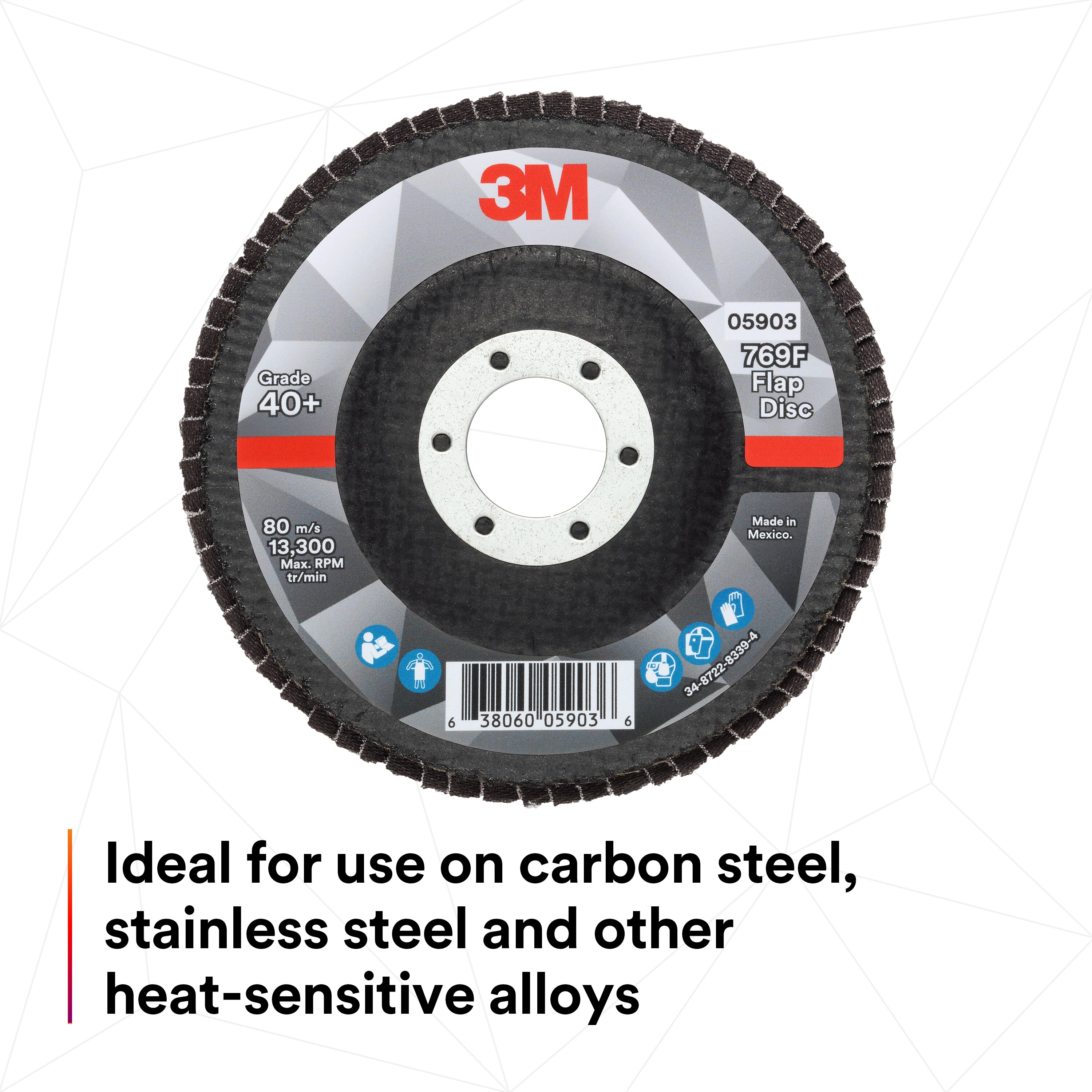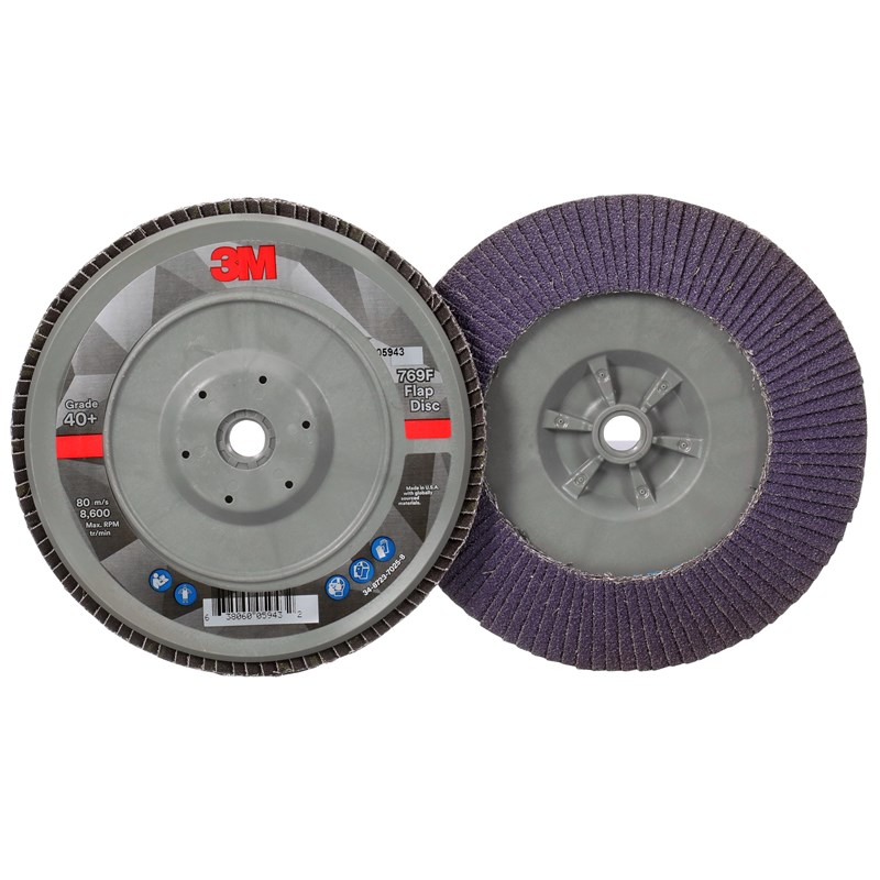 Tech Tip:In many cases, 3M™ Flap Disc 769F will allow you to grind and finish in one step, without changing abrasives. This is because, under normal conditions, 769F will generate a finish that is one grade finer than a fiber disc of the same grade. While a fiber disc will cut faster, this flap disc can eliminate steps and disc change-outs to help save you time.