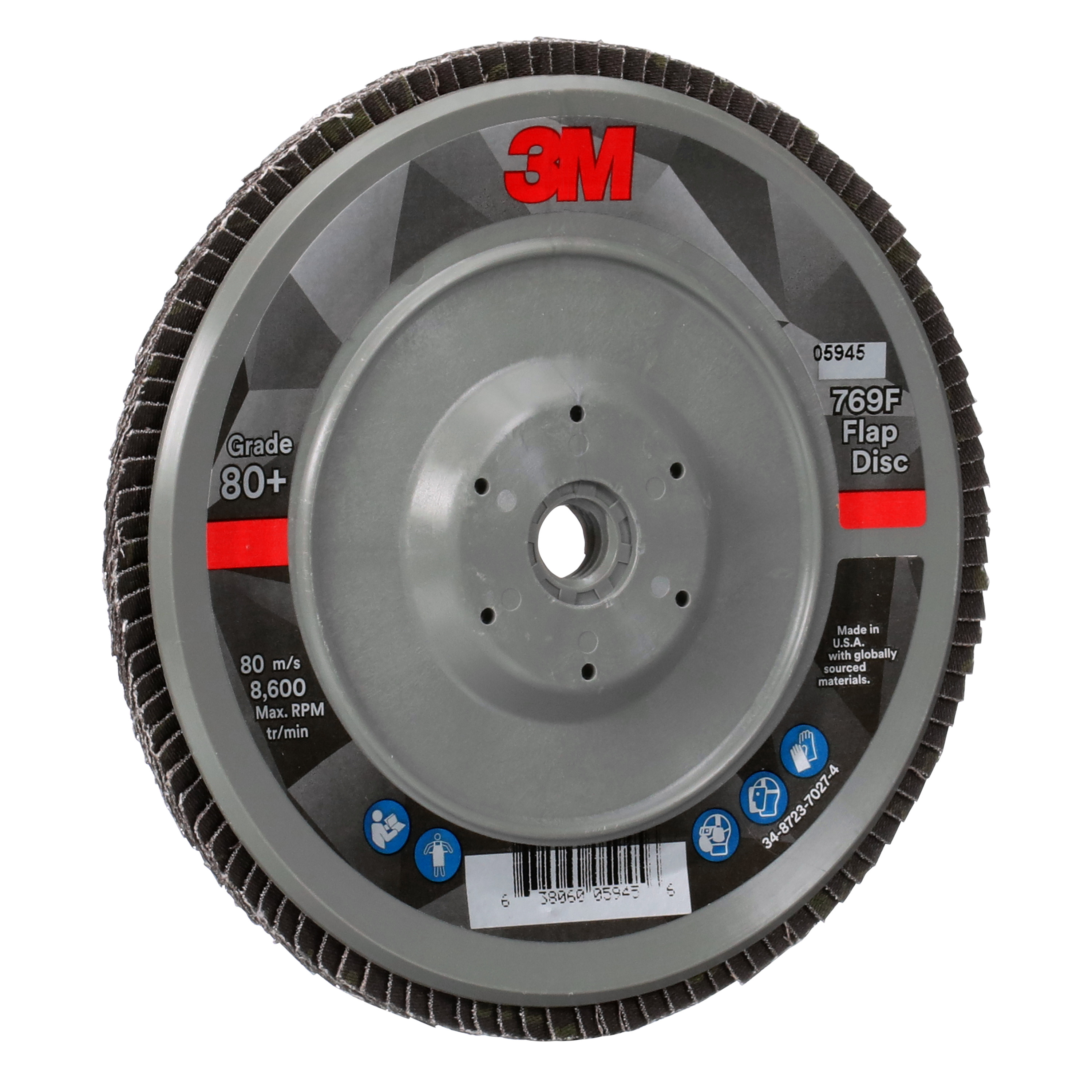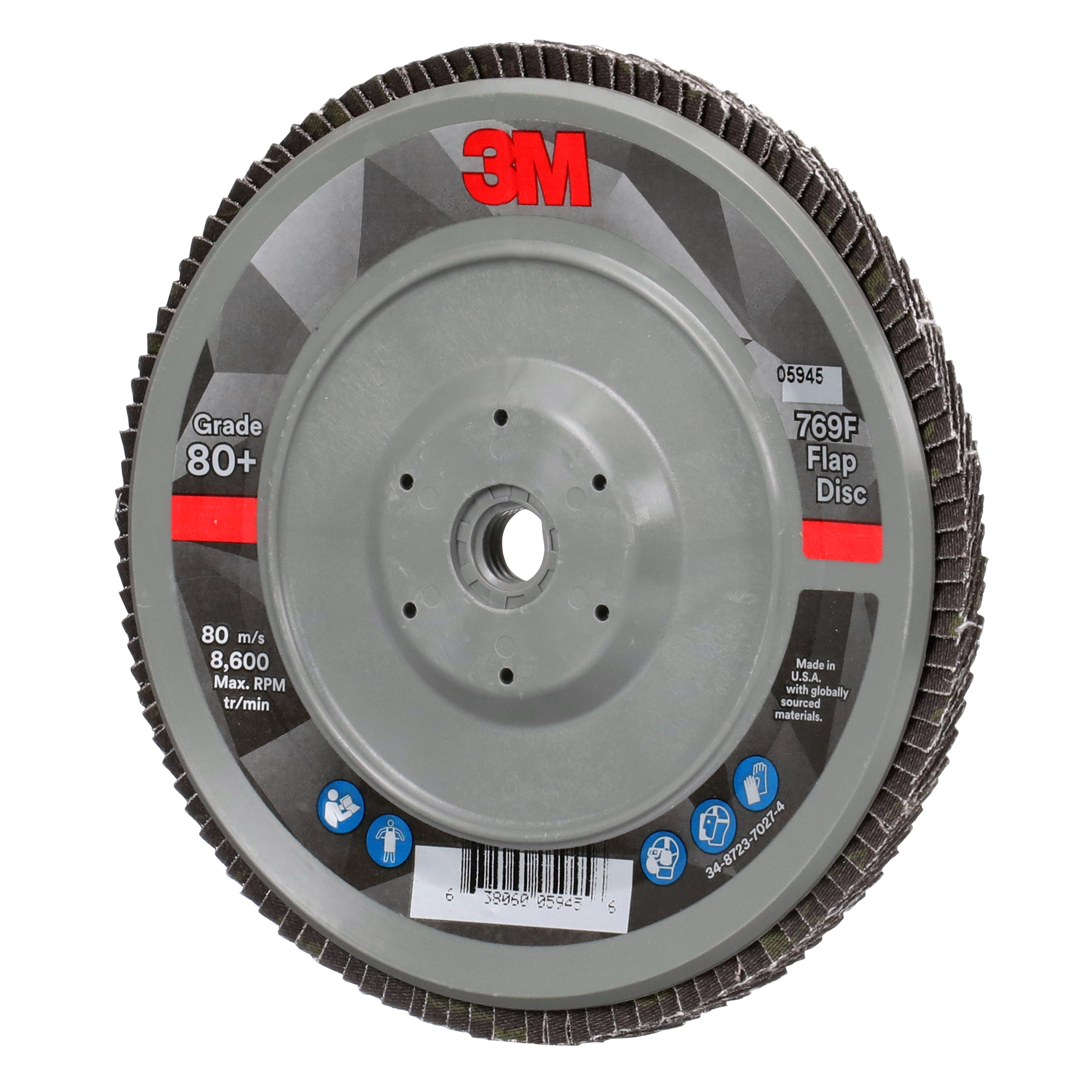 All Products>Abrasives>3M™ Flap Disc 769F, 80+, T29 Quick Change, 7 in x 5/8 in-11, 5 ea/Case