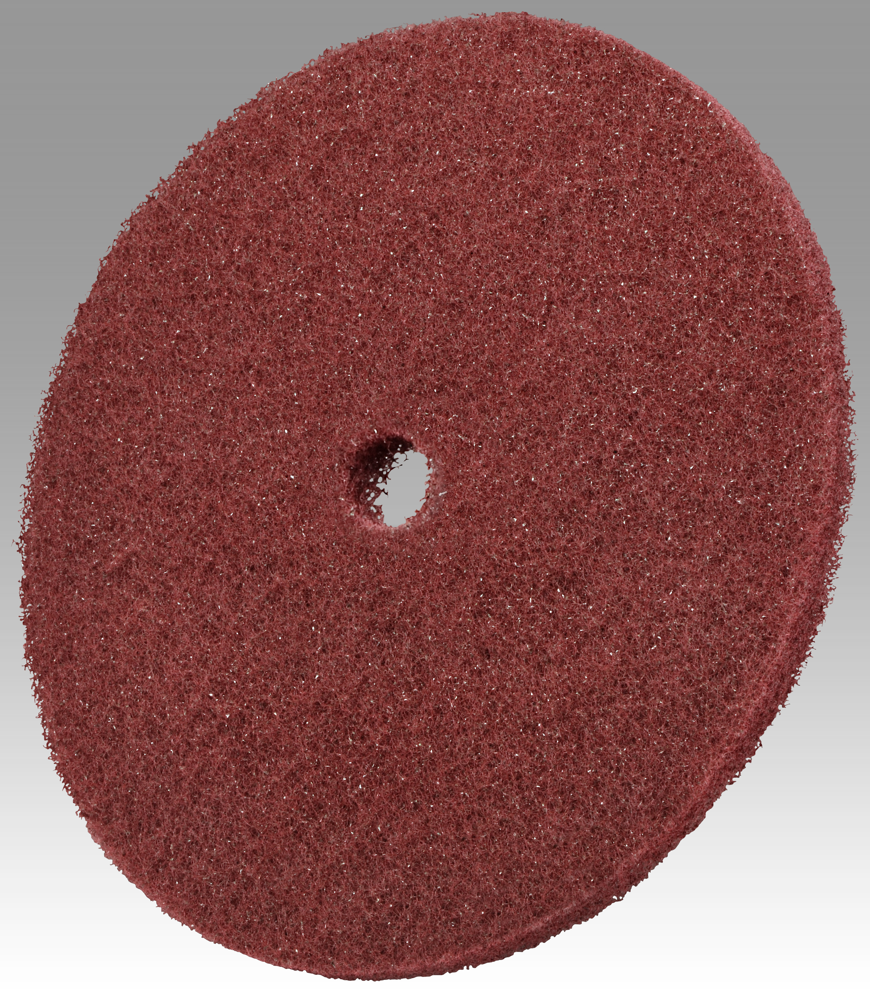 Conformability allows the Scotch-Brite™ High Strength Disc to work well on irregular surfaces and into tight areas without damaging the base material. This disc may be used individually or stacked on a straight shaft tool or bench motor to condition larger areas, bar grates, louvers, vents, and tracks.