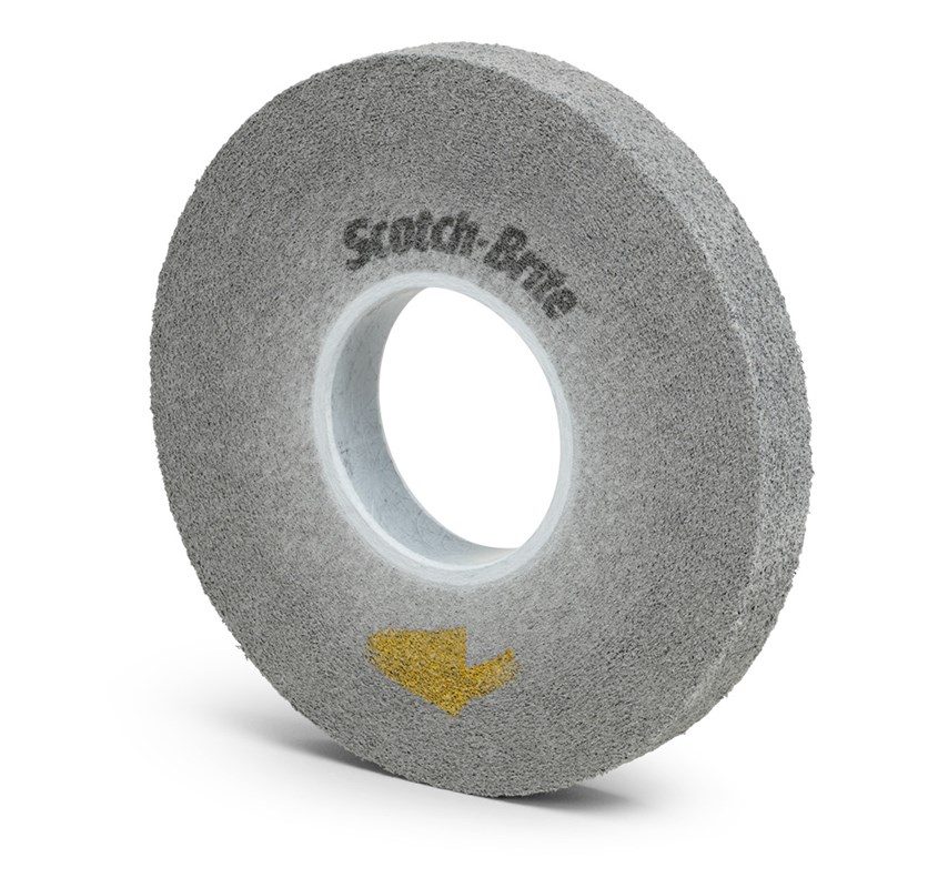 Exceptional Cut and Longevity, with Less Pressure The hard density Scotch-Brite™ EXL PRO Deburring Wheel quickly deburrs stamped or laser cut parts, finishes after belt sanding, and polishes all types of metals, composites and glass. It not only achieves a super fast cut, but leaves a smooth, clean surface without smearing, reducing your need for additional cleanup and preparation. Convolute construction and clean, uniform wear keep the wheel running smoothly and produce a professional finish with less pressure, minimizing fatigue. Scotch-Brite PRO material runs cool and keeps fresh abrasives continuously exposed, making it a superior choice on heat sensitive substrates. The toughness of the wheel extends its service life to keep your productivity higher and costs lower.