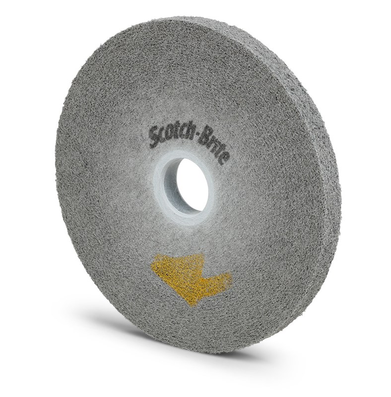 Exceptional Cut and Longevity, with Less Pressure The hard density Scotch-Brite™ EXL PRO Deburring Wheel quickly deburrs stamped or laser cut parts, finishes after belt sanding, and polishes all types of metals, composites and glass. It not only achieves a super fast cut, but leaves a smooth, clean surface without smearing, reducing your need for additional cleanup and preparation. Convolute construction and clean, uniform wear keep the wheel running smoothly and produce a professional finish with less pressure, minimizing fatigue. Scotch-Brite PRO material runs cool and keeps fresh abrasives continuously exposed, making it a superior choice on heat sensitive substrates. The toughness of the wheel extends its service life to keep your productivity higher and costs lower.