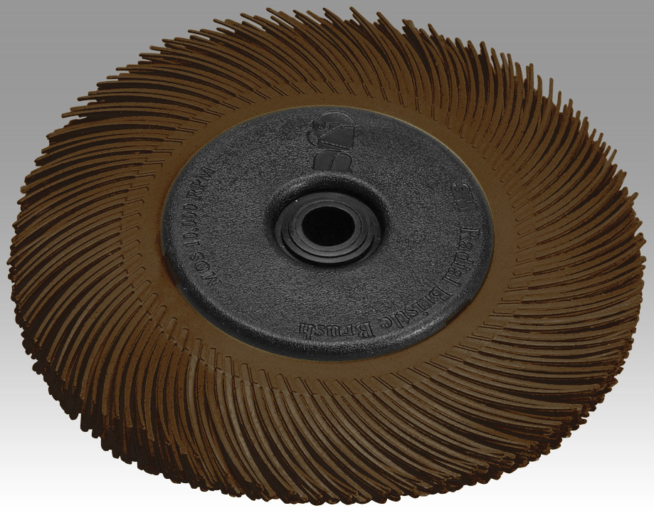 The Scotch-Brite™ Radial Bristle Disc is designed to last longer than wire and other abrasive discs and works well on aluminum, brass, bronze, carbon steel, cast iron, stainless steel, and other metals. Applications include general industrial, aerospace, automotive, metalworking, transportation, and automotive as well as fine detailing requirements of electronics, jewelry and woodworking industries.