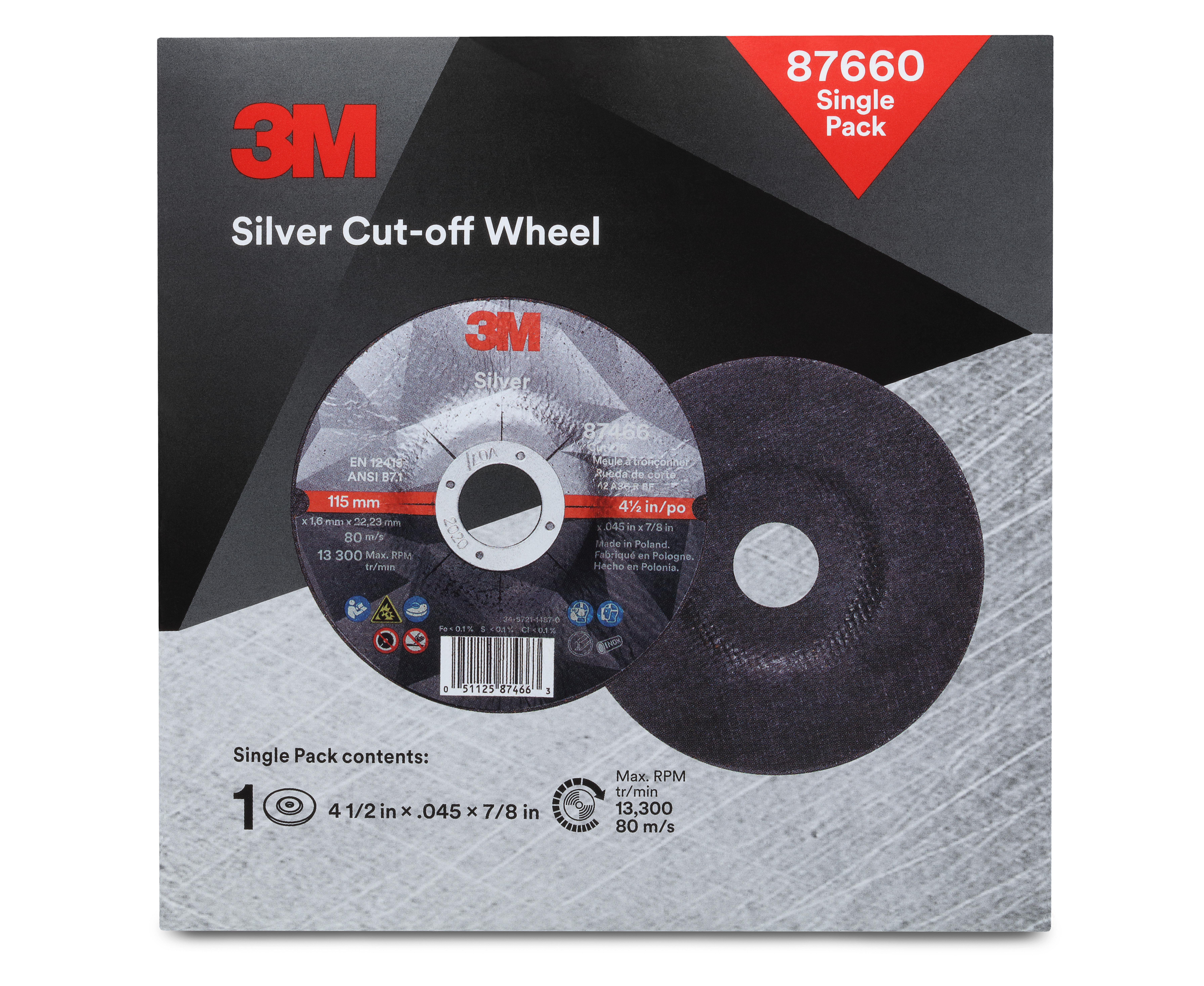 All Products>Abrasives>3M™ Silver Cut-Off Wheel, 87660, 36+, T27, 4.5 in x 0.045 in x 7/8 in, Single Pack, 10 ea/Case