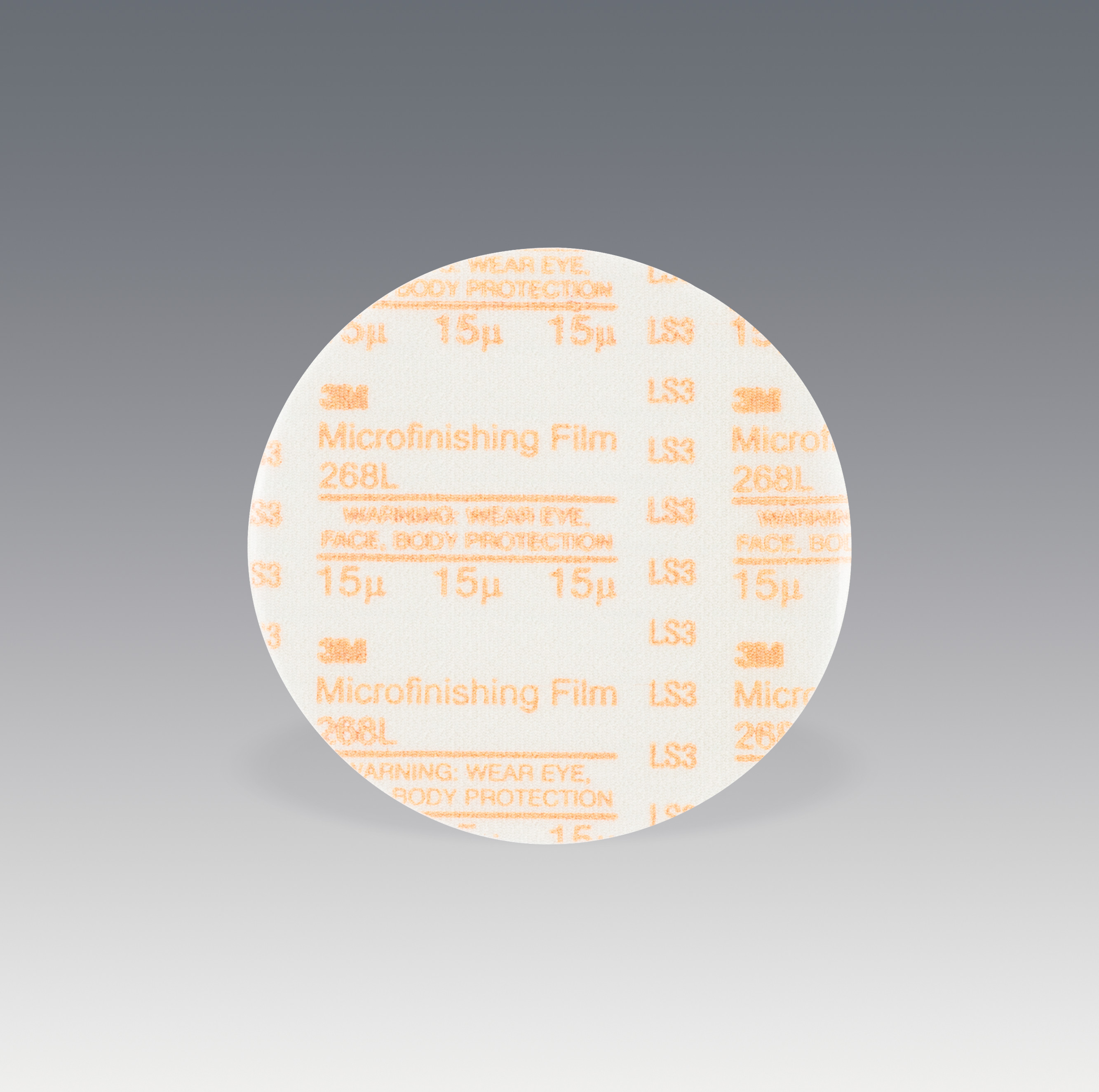 3M™ Microfinishing PSA Film Disc 268L, 15 Mic 3MIL, Type D, 3 in x NH, Die 300V, 100/Bag, 1000 ea/Case