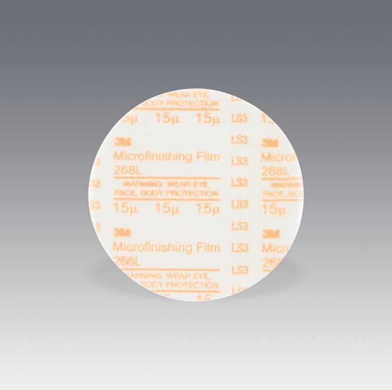 The 3M™ Microfinishing PSA Film Disc 268L is a resin-bonded disc that has great flexibility and won't sacrifice durability and reliable performance. To complement the effective cut of the aluminum oxide mineral, the polyester film backing flexes to help achieve a consistent finish over contours and offers greater tear-resistance than comparable paper products, making it ideal for high-production environments.