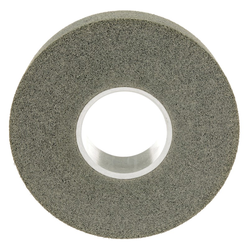 The wheel utilizes either silicon carbide or aluminum oxide – and are available in medium to hard densities, ranging from 8 to 10. Together, these properties combine to cut aggressively, maintain wheel shape and stand up to edges. Nylon fibers in the open web break down while deburring the surface, exposing fresh, sharp mineral. The wheel breakdown contributes to consistent cutting action. Gaps between the nylon fibers allow swarf and debris to escape, keeping the mineral sharp and preventing blunt or dull edges that might gouge or blemish the surface of the workpiece. Subsequently, smear-resistant finishes result.