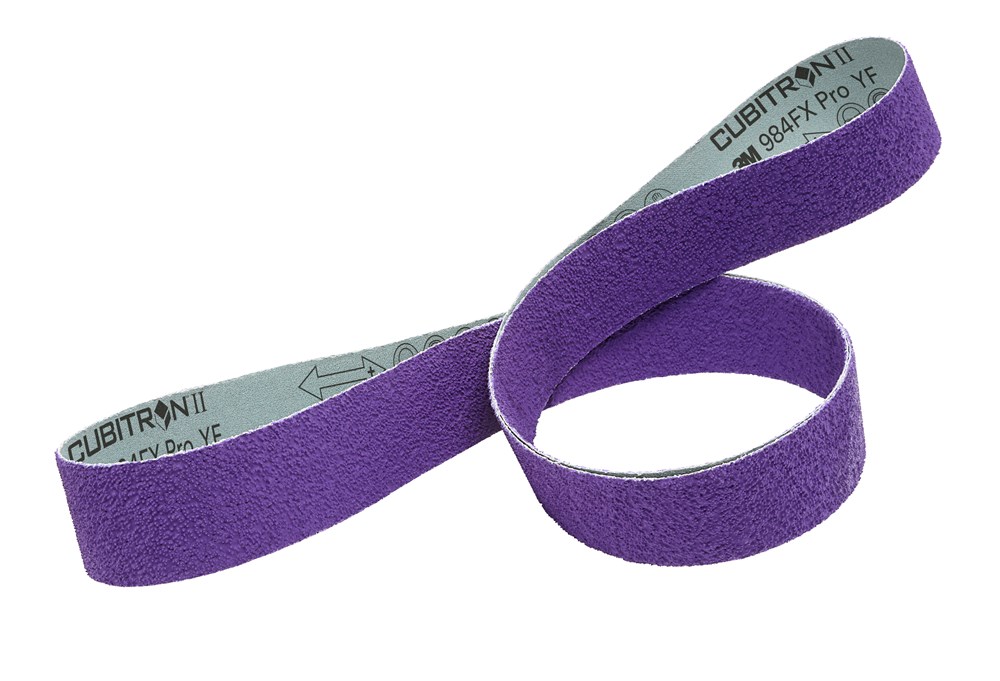 Optimize Your Outcomes with Re-Engineered Grain Development of the 3M™ Cubitron™ II Cloth Belt 984FX Pro included a reformulation of the groundbreaking technology behind 3M™ Cubitron™ II Abrasives. This new re-engineered 3M Precision-Shaped Grain cuts even faster and last even longer, helping you boost productivity in your operation.