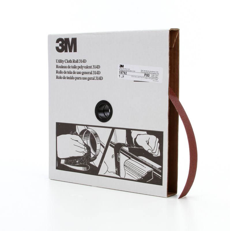 All Products>Abrasives>3M™ Utility Cloth Roll 314D, P80 J-weight, 1 in x 50 yd, 5 ea/Case