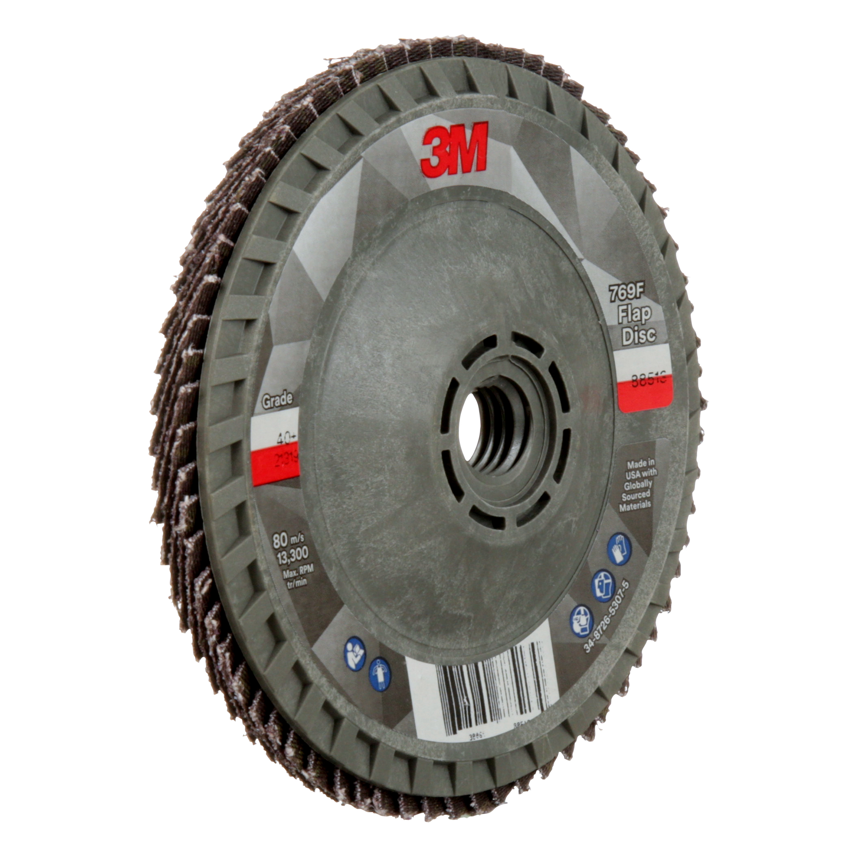 Tech Tip:In many cases, 3M™ Flap Disc 769F will allow you to grind and finish in one step, without changing abrasives. This is because, under normal conditions, 769F will generate a finish that is one grade finer than a fiber disc of the same grade. While a fiber disc will cut faster, this flap disc can eliminate steps and disc change-outs to help save you time.