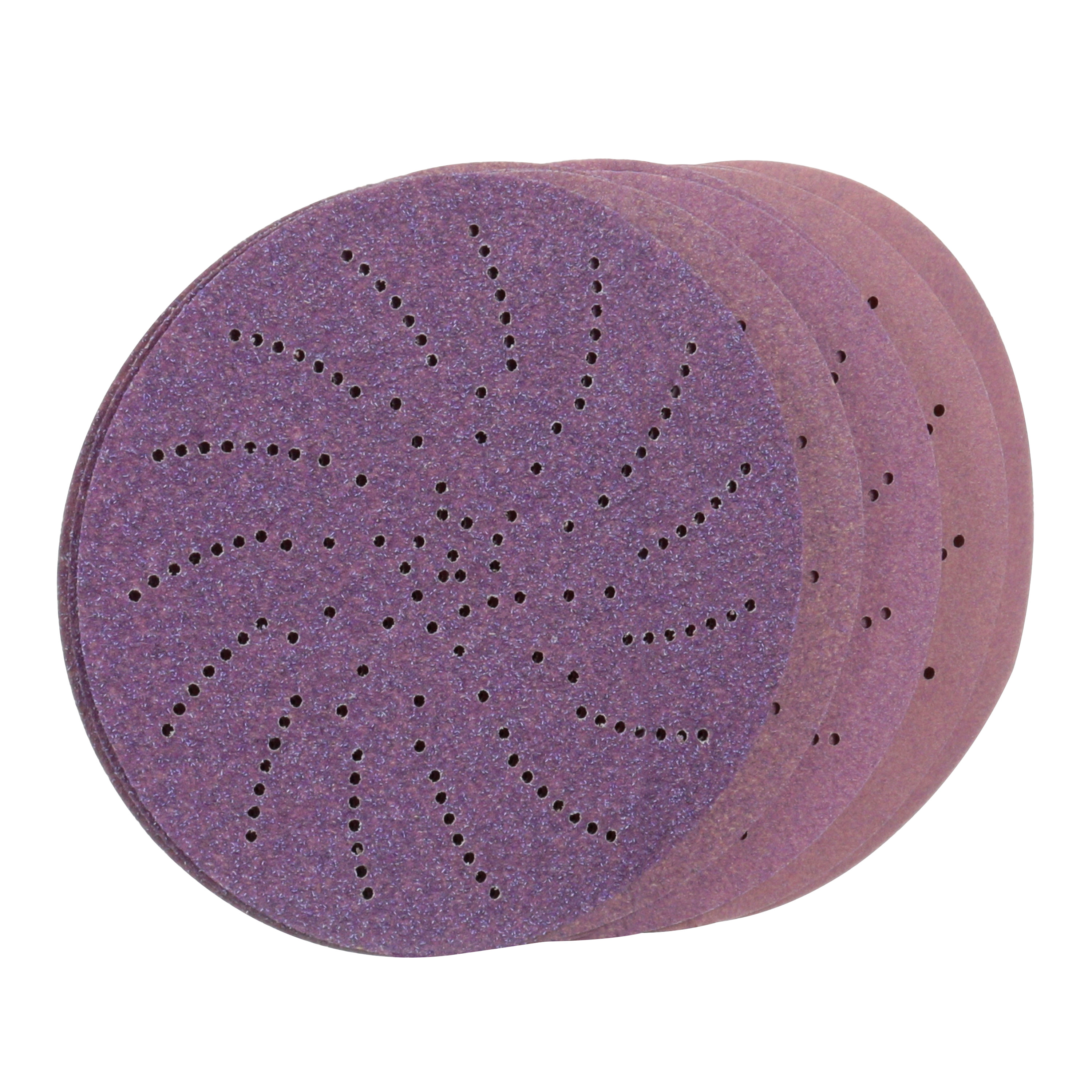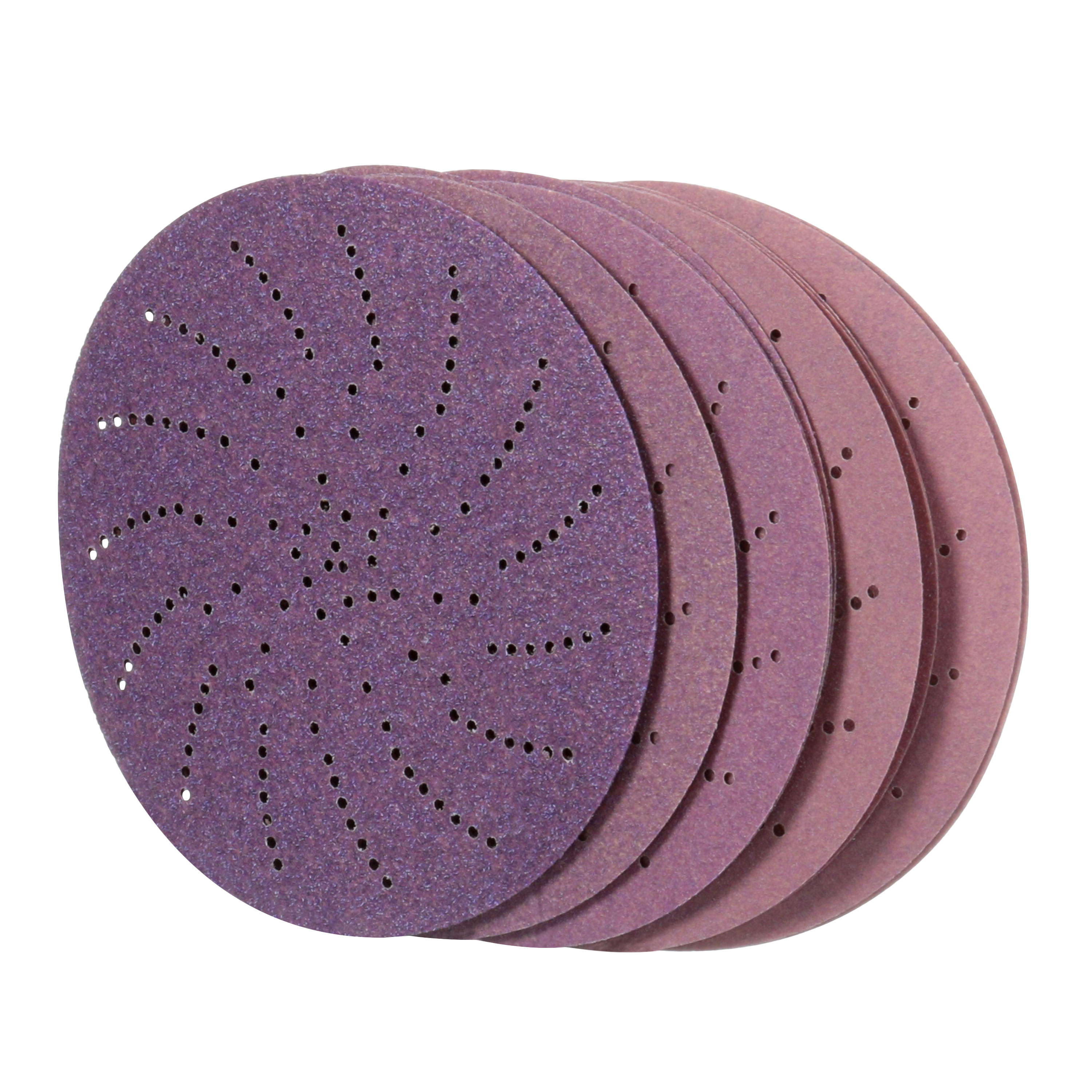 Sandpaper discs cut better and last longer when dust isn't loading the cutting surface of the abrasives. The proprietary multi-hole pattern on Clean Sanding products evacuates dust at a higher rate than 5- or 6-hole products. This hole design doesn't require alignment of holes with the disc pad, making disc changes quick and simple. Open coat construction means the abrasive grains are placed with space between them to help evacuate dust and other sanding debris and avoid clogging the cutting edge of the grains. The load-resistant coating allows the disc to continue cutting even when sanding softwoods, paints, and other materials that would, otherwise, clog the disc and hinder sanding ability. All of this adds up to increased productivity and reduced material consumption. For maximum dust extraction, use this disc with a 3M™ Hookit™ Clean Sanding pad and a random orbital sander with vacuum (both sold separately).