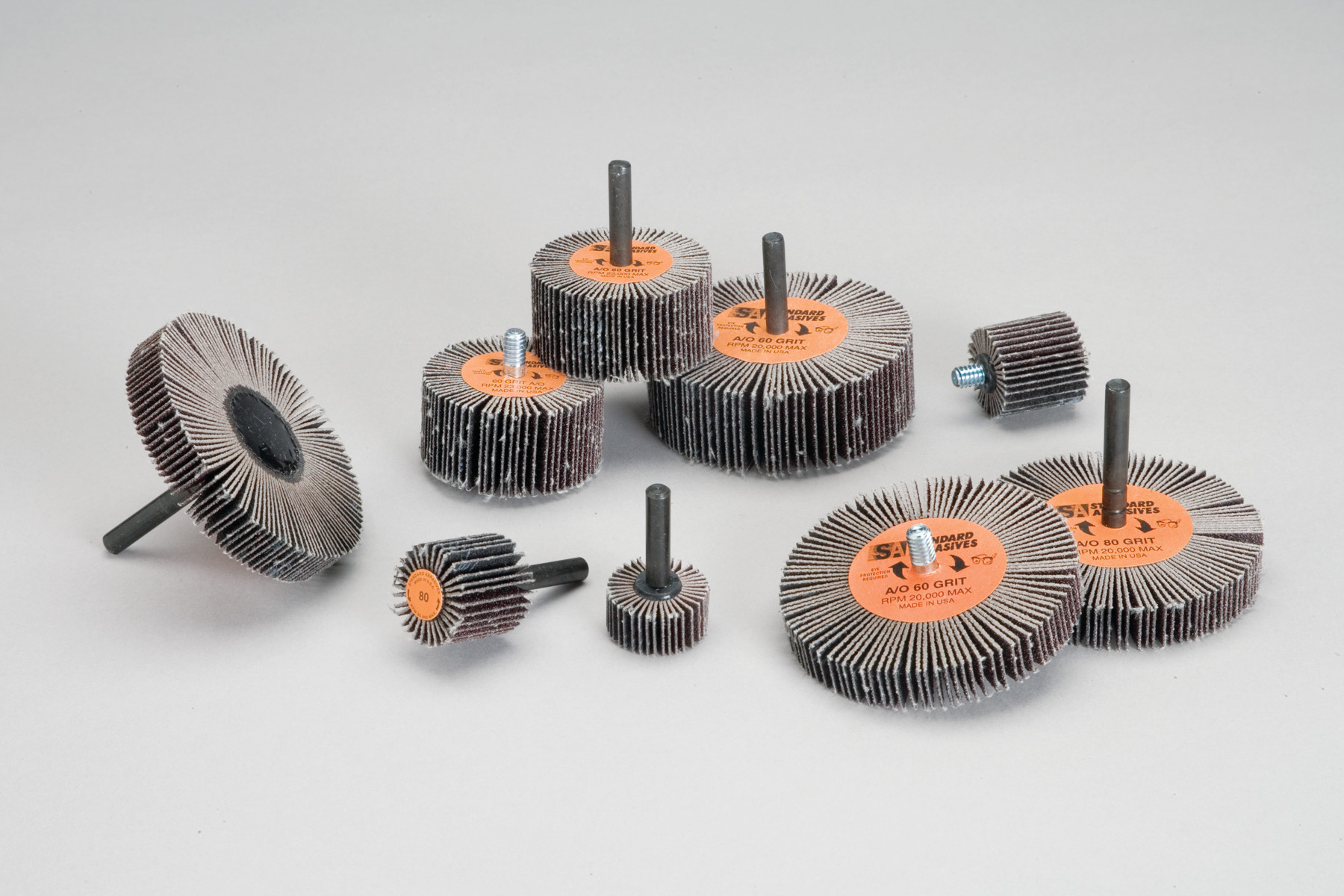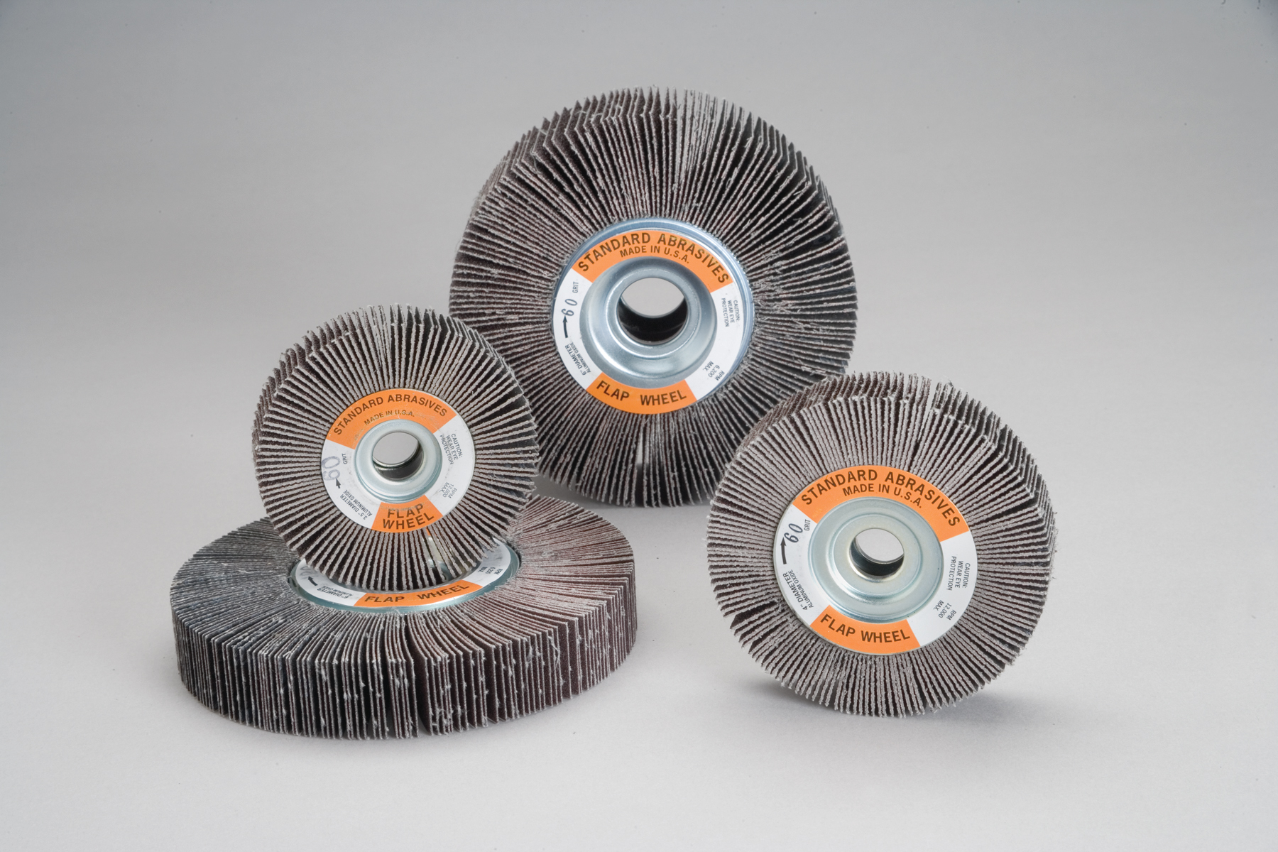 Compared with non-woven products, flap wheels offer a more aggressive cut for cleaning or finishing. If a silicon carbide product is preferred for finishing applications, consider our Standard Abrasives™ Silicon Carbide Flap Wheel, available in 1-3˝ diameters (sold separately). When a job requires even more flexibility for improved finishing, or to reduce dust, use a Standard Abrasives™ Flexible Flap Wheel (sold separately), which has flaps with increased flexibility and a slight radius to the flaps.
