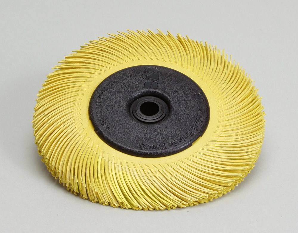 The Scotch-Brite™ Radial Bristle Disc is designed to last longer than wire and other abrasive discs and works well on aluminum, brass, bronze, carbon steel, cast iron, stainless steel, and other metals. Applications include general industrial, aerospace, automotive, metalworking, transportation, and automotive as well as fine detailing requirements of electronics, jewelry and woodworking industries.
