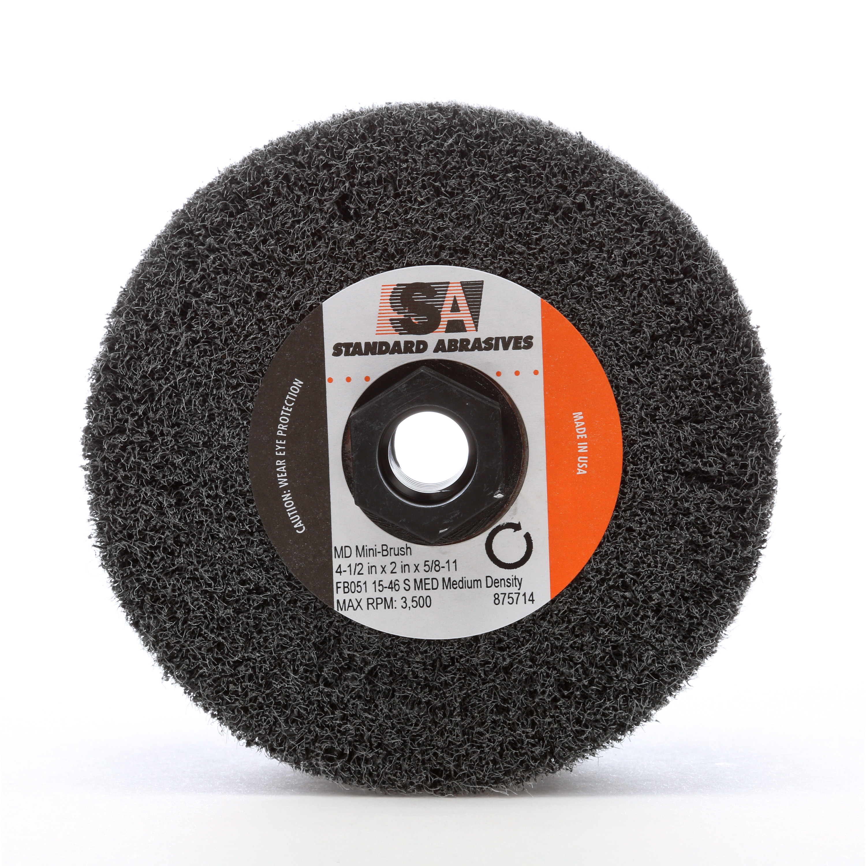All Products>Abrasives>Standard Abrasives™ MD Mini-Brush 875714, 4-1/2 in x 2 in x 5/8-11 FB051 15-46 S MED Medium Density, 2 ea/Case