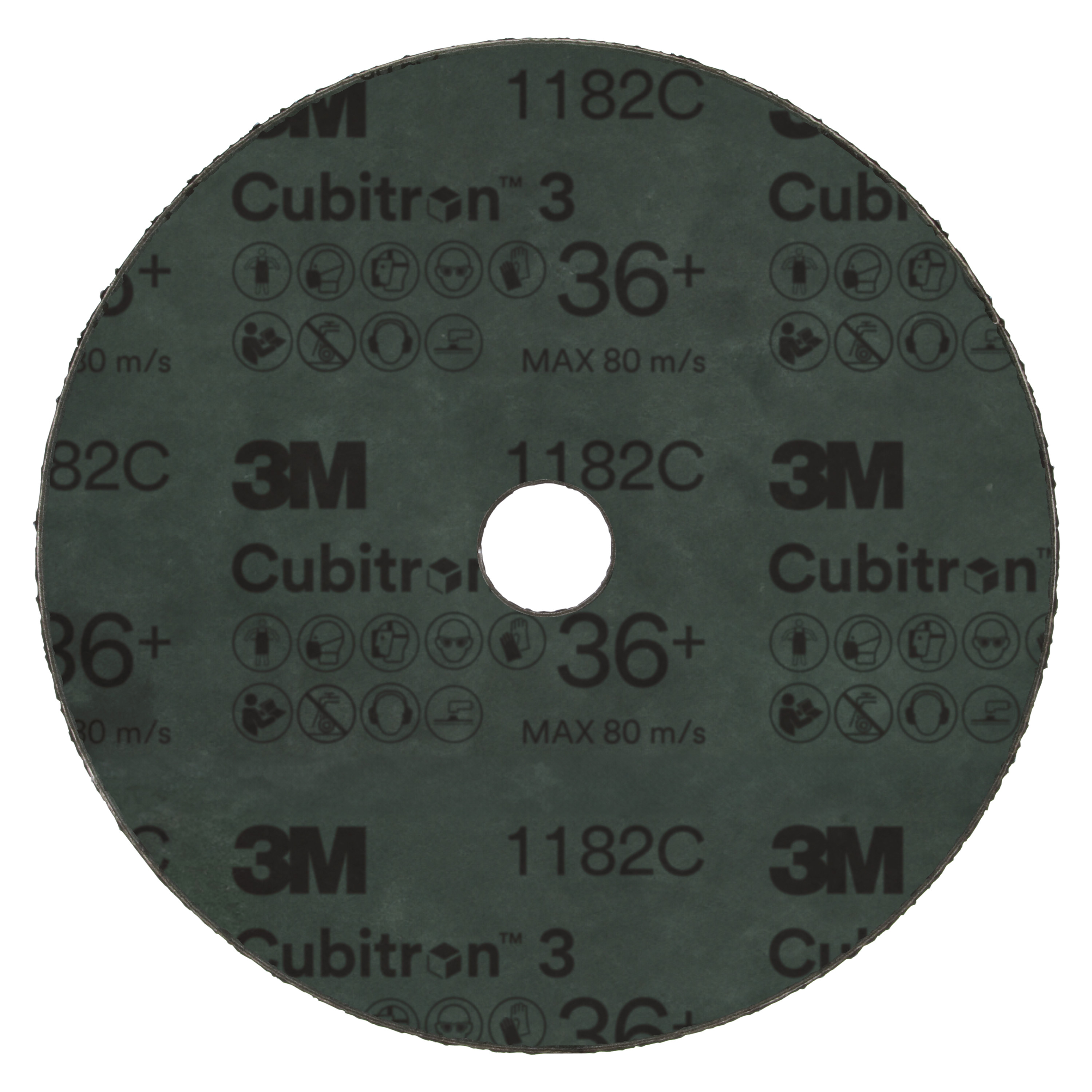 All Products>Abrasives>3M™ Cubitron™ 3 Fibre Disc 1182C, 36+, 9-1/8 in x 7/8 in, Die 912J, 25/Bag, 100 ea/Case