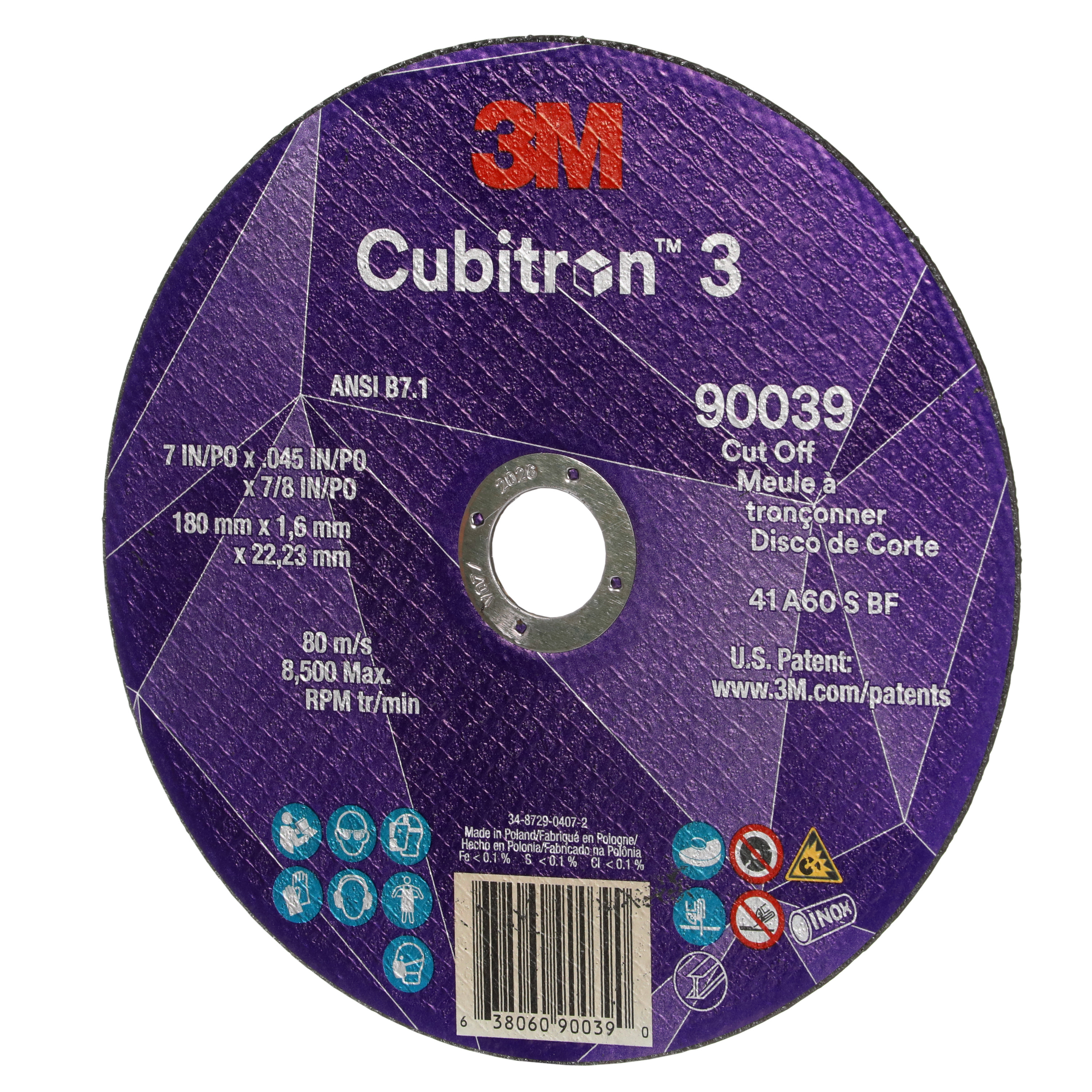 3M™ Cubitron™ 3 Cut-Off Wheel, 90039, 60+, T1, 7 in x 0.45 in x 7/8 in(180 x 1.6 x 22.23 mm), ANSI, 25/Pack, 50 ea/Case
