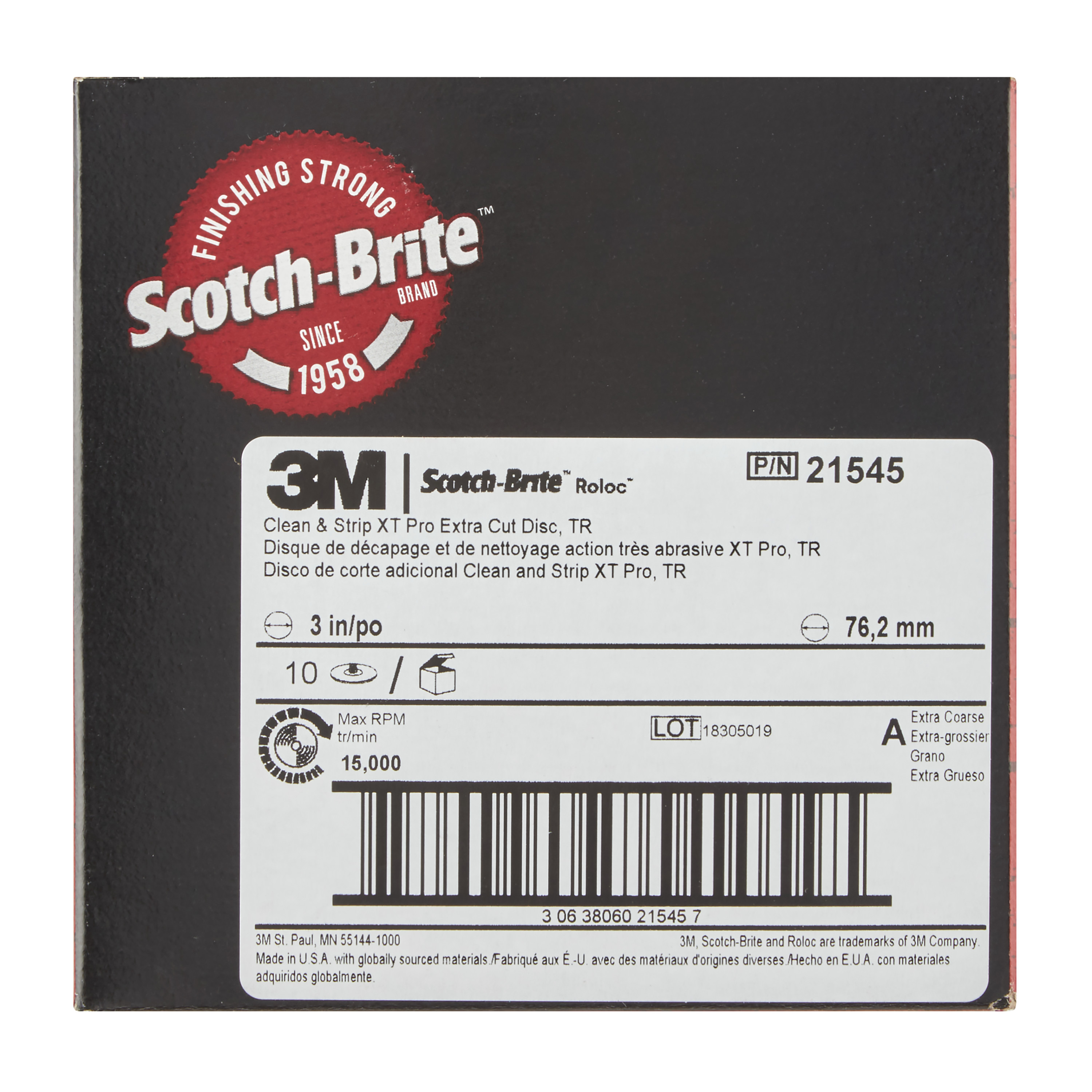 Scotch-Brite™ Roloc™ Clean and Strip XT Pro Extra Cut Disc, XC-DR, A/O Extra Coarse, TR, 3 in, 25 ea/Case