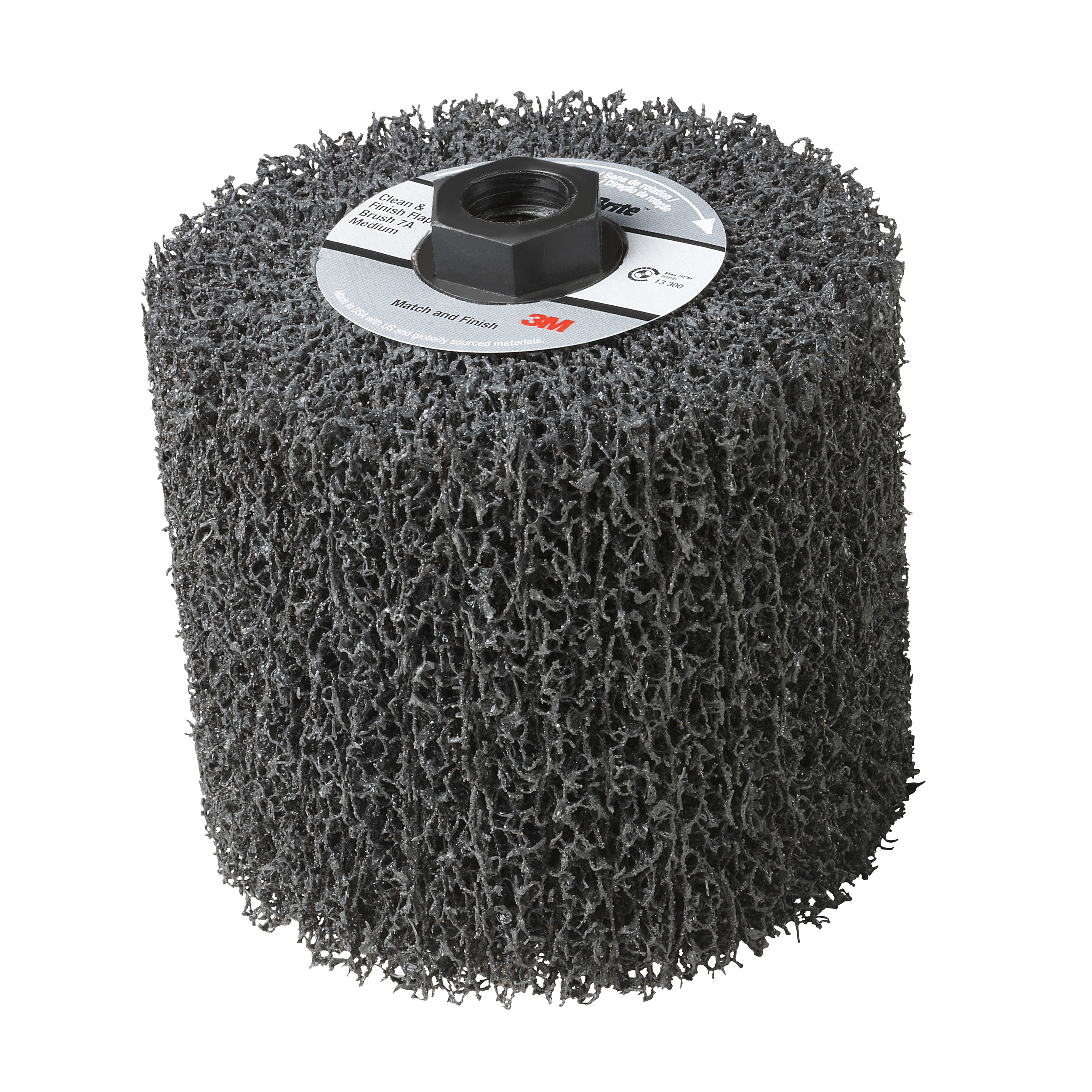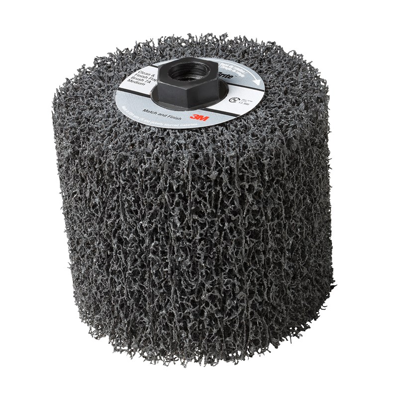 Easy Attachment Scotch-Brite™ Match and Finish Flap Brush may be used on the 3M 1HP Match & Finish Sander (sold separately) and is available in 5/8-11 threaded inserts for easy thread on/off attachment as well as a 4-way keyway attachment system.