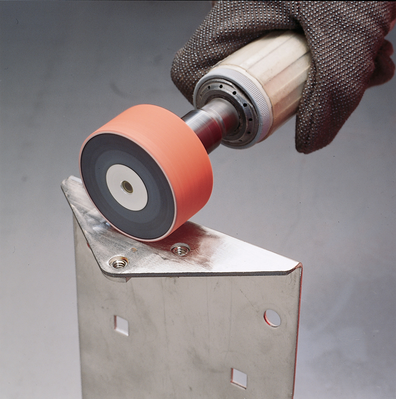 Tube-shaped band fits inner and outer contours to remove parting lines, imperfections, and burrs