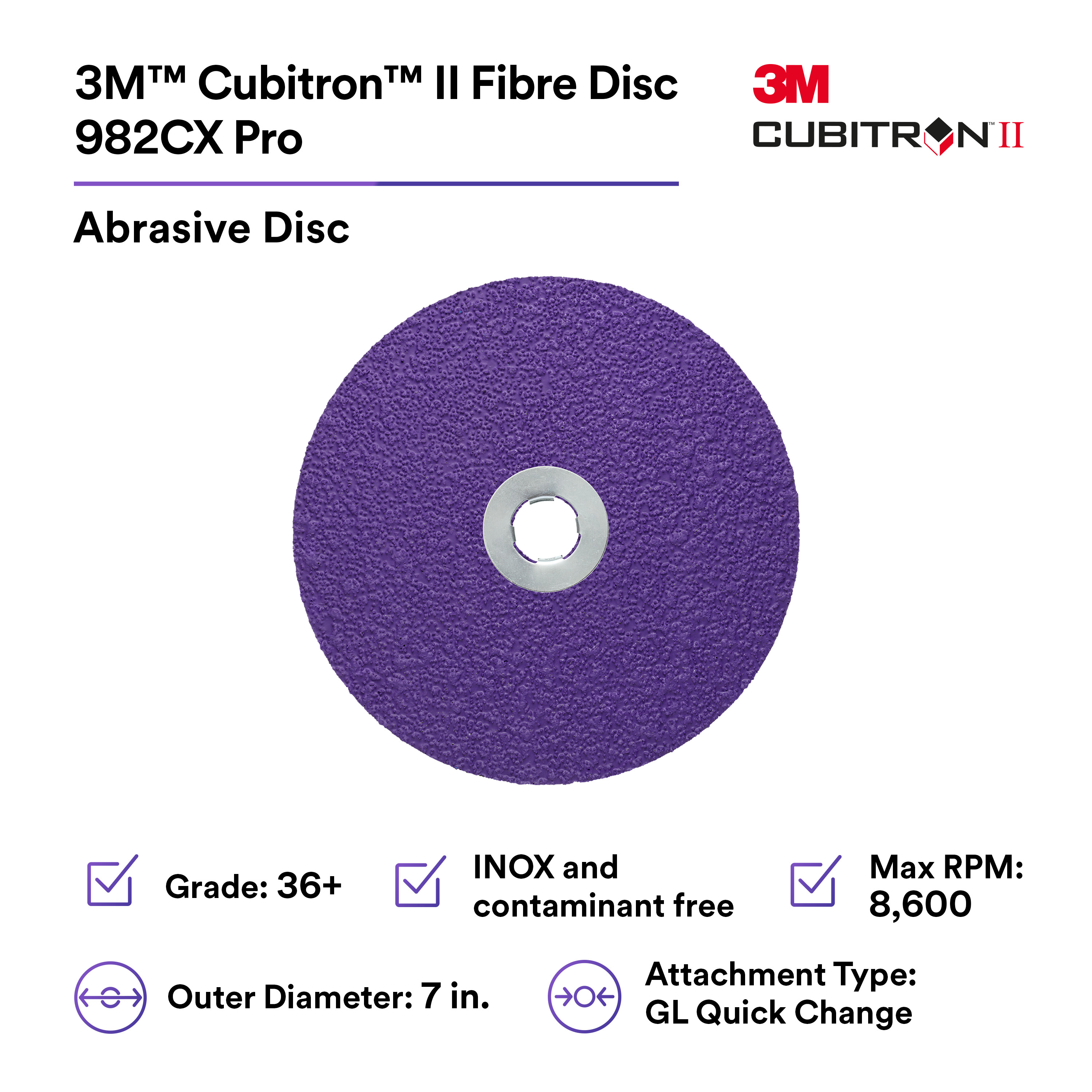- RE-ENGINEERED 3M PRECISION SHAPED-GRAIN: Allows the 3M Cubitron II Fibre Discs 982CX Pro to provide a 33% higher cut rate and remove 31% more material with a sustained cut compared to 3M Cubitron II Fibre Disc 982C