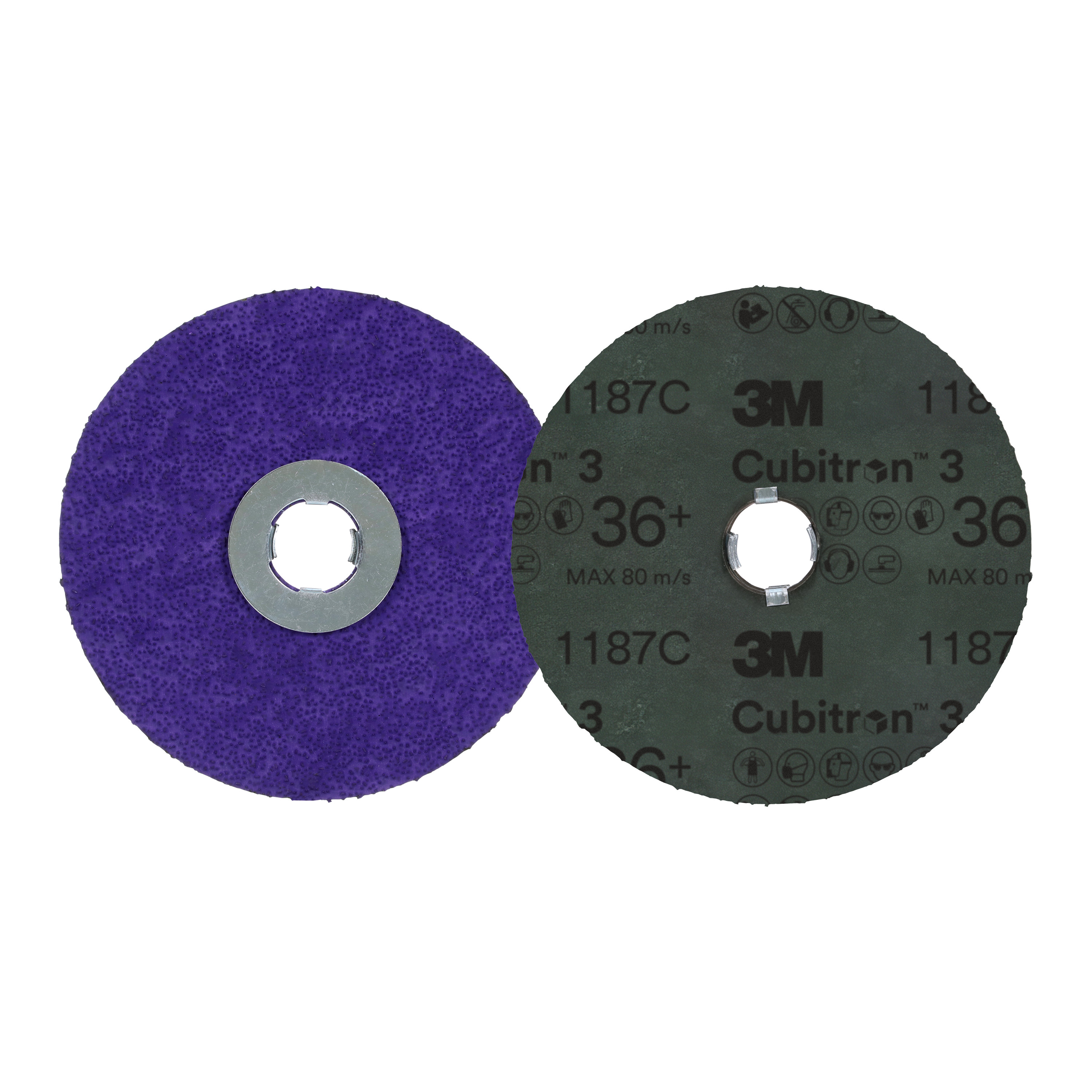 3M™ Cubitron™ 3 Fibre Disc 1187C, 36+, GL Quick Change, 5 in, Die 500P, 25/Bag, 100 ea/Case