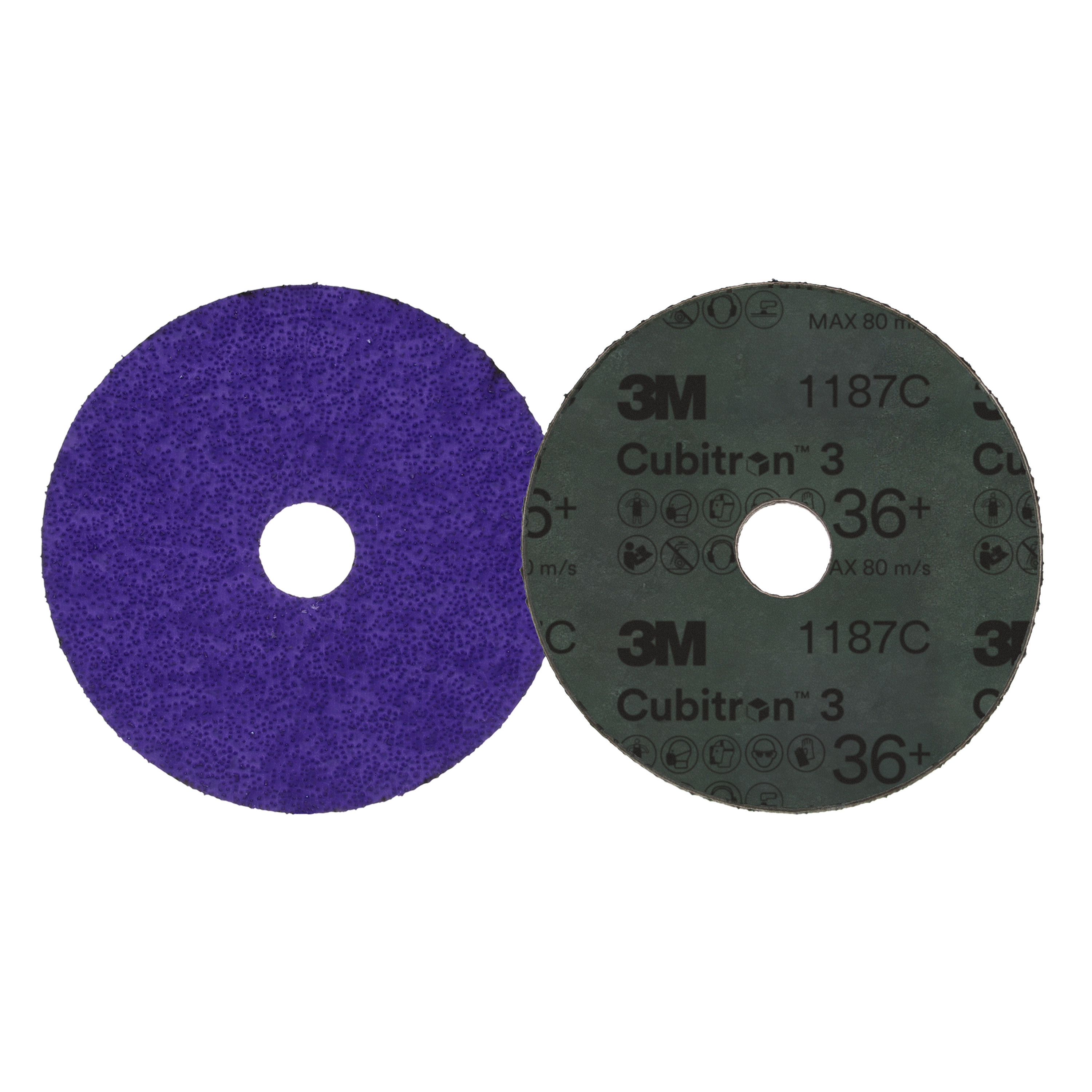 3M™ Cubitron™ 3 Fibre Disc 1187C, 36+, 4 in x 5/8 in, Die 400FF, 25/Bag, 100 ea/Case