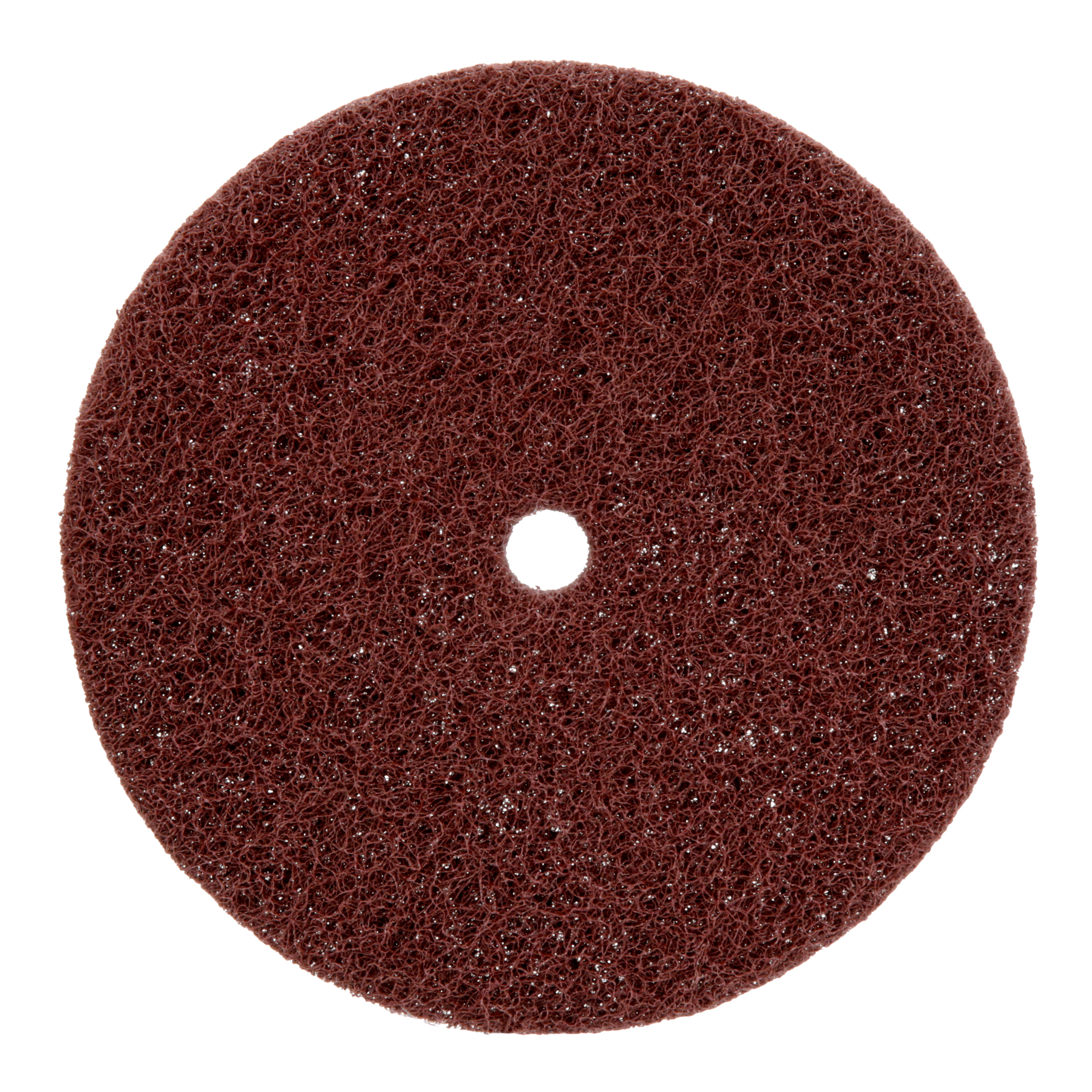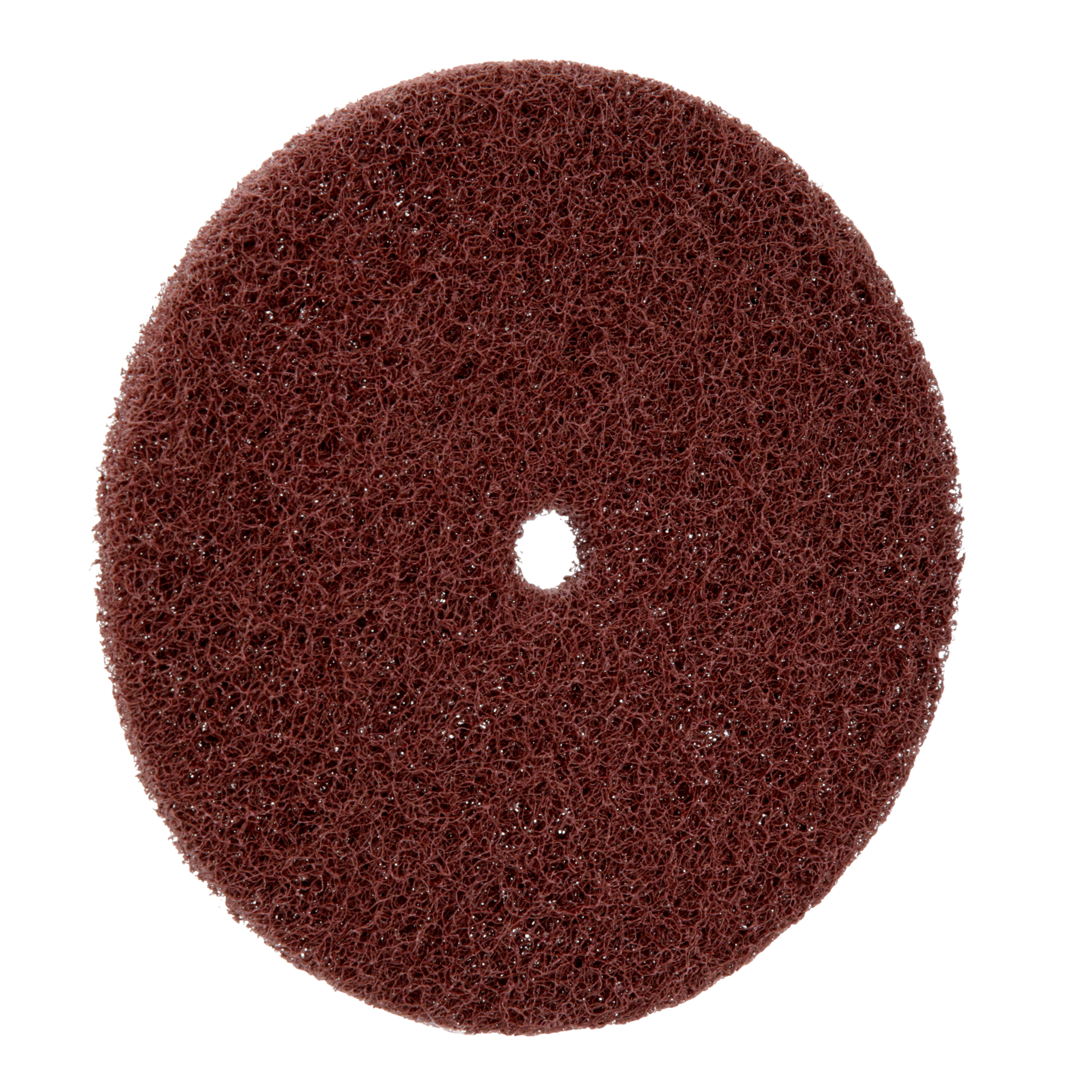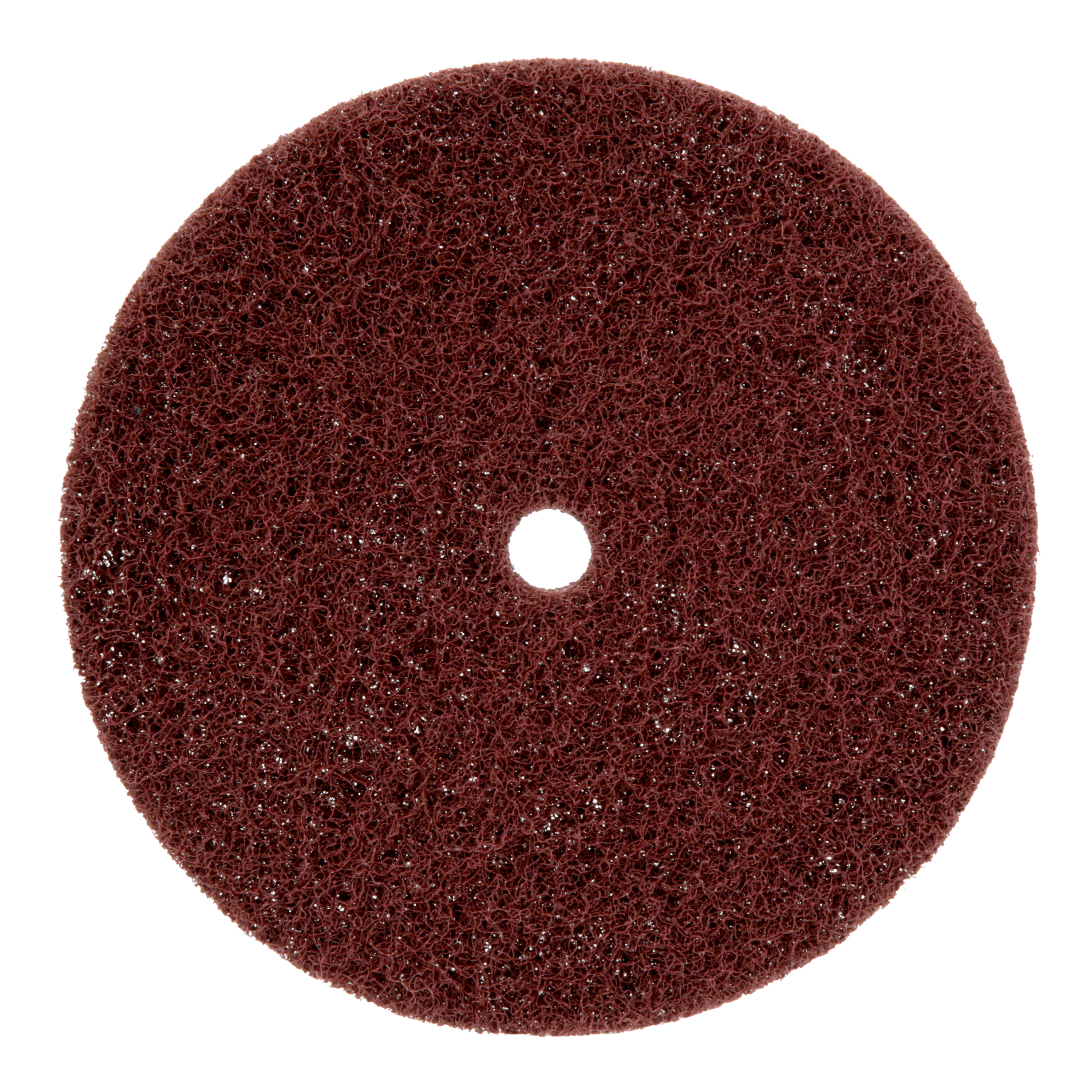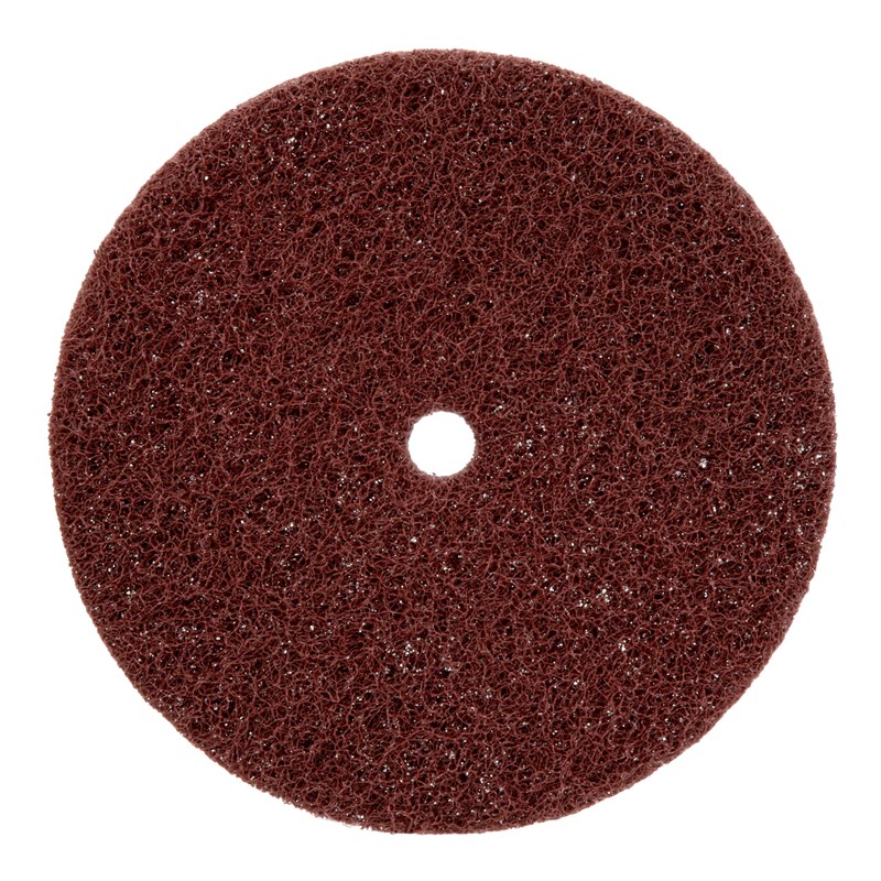 The Standard Abrasives™ Buff and Blend GP Disc is a great multi-purpose product for general-duty industrial applications. One of five Buff and Blend materials, the maroon GP material is moderately aggressive. Use it to remove light oxidation, blend minor surface imperfections, clean surfaces prior to coatings, remove small burrs, and perform basic equipment cleanup. A flexible open web conforms to workpiece contours, radii and internal diameters. Its non-woven construction makes the disc spongy and responsive. If desired, discs may be ganged on a shaft to form a wheel and accommodate larger workpieces. When the job requires a tougher disc for higher-pressure applications, try using a Standard Abrasives™ Buff and Blend HP or HS Disc. Quick change discs are also available.