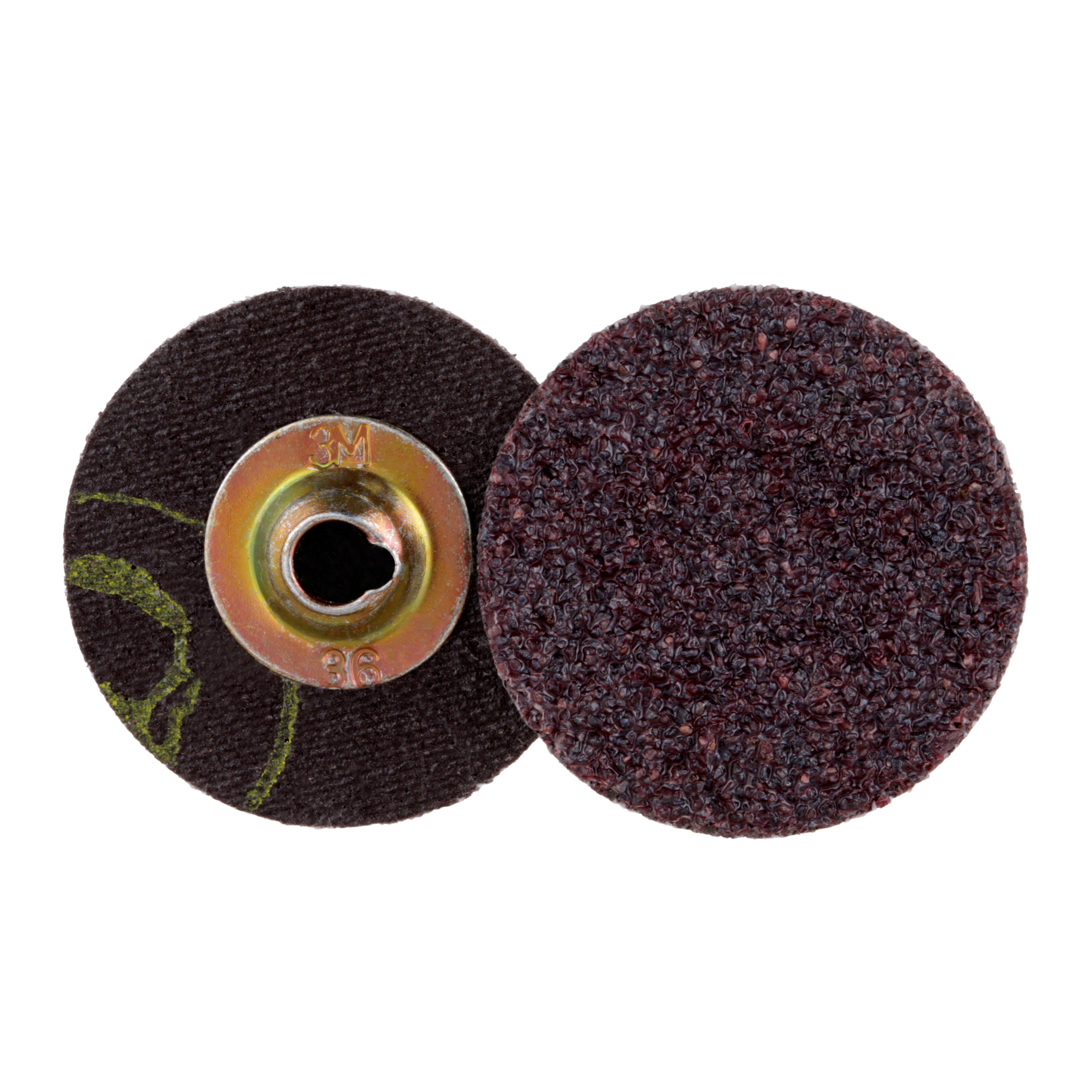 3M™ Roloc™ Disc 361F features an aluminum oxide abrasive, which is a popular choice among industrial professionals because of its fast cut-rate and long life. This mineral makes a tough, durable abrasive that self-fractures to expose fresh cutting edges, whereas traditional natural abrasives dull more quickly. Due to its fast cut-rate, hardness, and strength, it is widely used in grinding applications in addition to sanding and finishing applications. Aluminum oxide is suitable for a wide variety of materials in both woodworking and metalworking, including ferrous alloys.