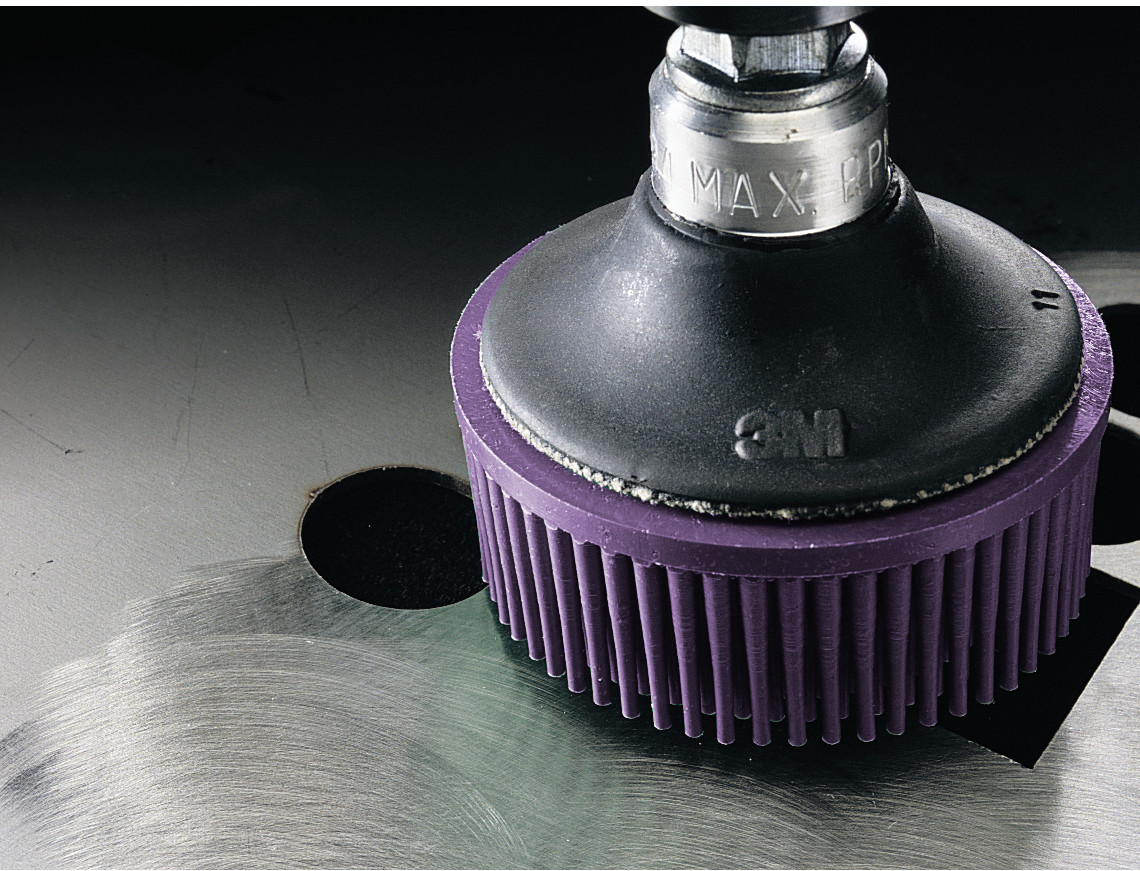 Superior Load Resistance Unlike conventional steel-wool abrasives, Scotch-Brite™ Roloc™ Body Man's Bristle Disc is made with polymer bristles that contain no wire filaments.The radial layout and spacing between the bristles was purposefully engineered to maximize load resistance. Spacing between bristles allows unwanted swarf to escape, so the abrasive does not get clogged with debris and the mineral can keep cutting sharper, longer. Additionally, the strong polymer blend that makes up the bristles is stiff and durable, so it adds even more longevity to the disc's service life. Trust Scotch-Brite™ Roloc™ Body Man's Bristle Disc for those substrates that call for superior load resistance.