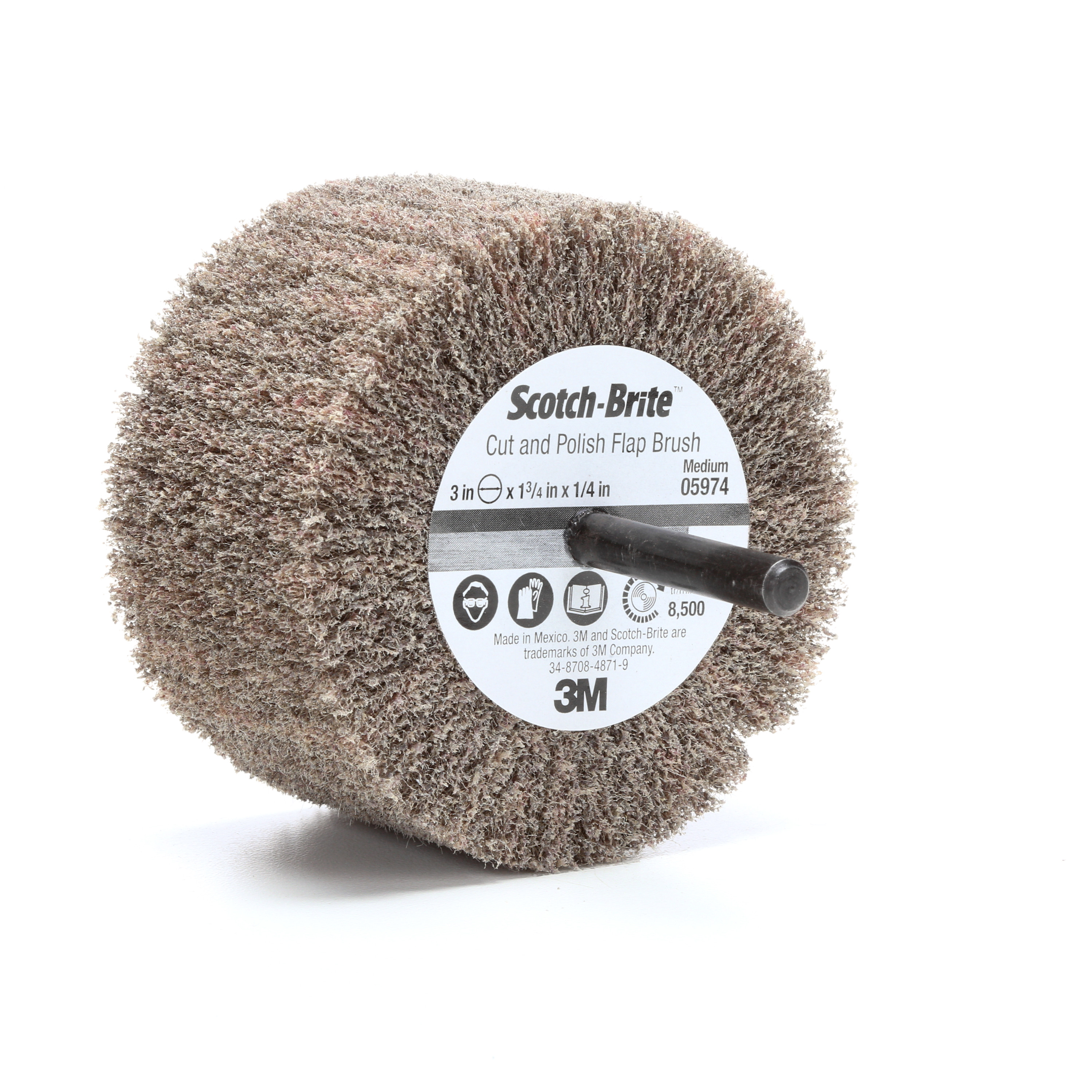 All Products>Abrasives>Scotch-Brite™ Cut and Polish Flap Brush, 3 in x 1-3/4 in x 1/4 in A MED, 10 ea/Case