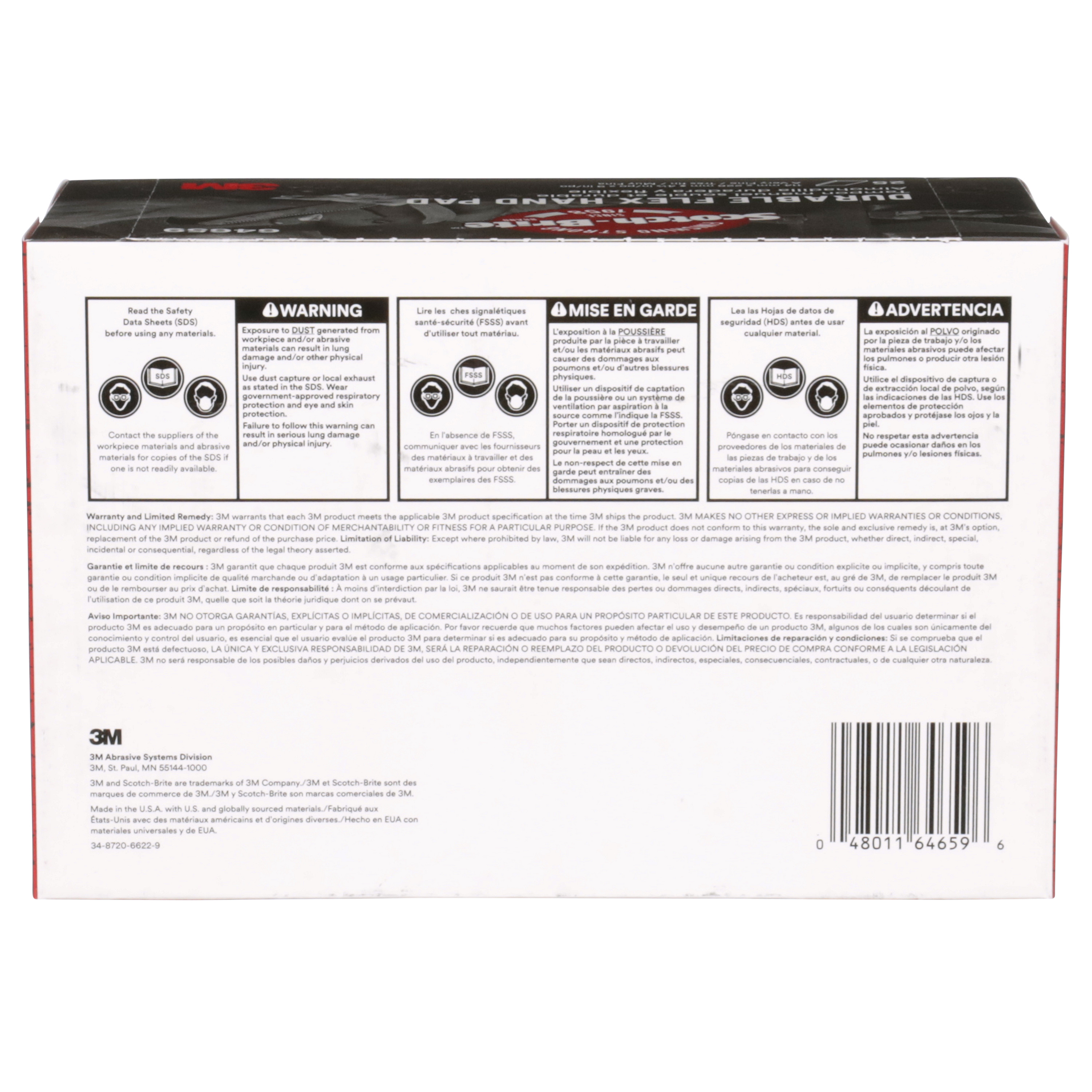 The performance of Scotch-Brite™ Durable Flex Hand Pad is comparable to steel wool, but our Scotch-Brite™ pads won't shred during use, rust after use, or create fine metal splinters. The nonwoven, open-web material resists loading and can be used dry, with water or some solvents and rinsed clean for reuse. This multipurpose pad can be used by hand for precise control.