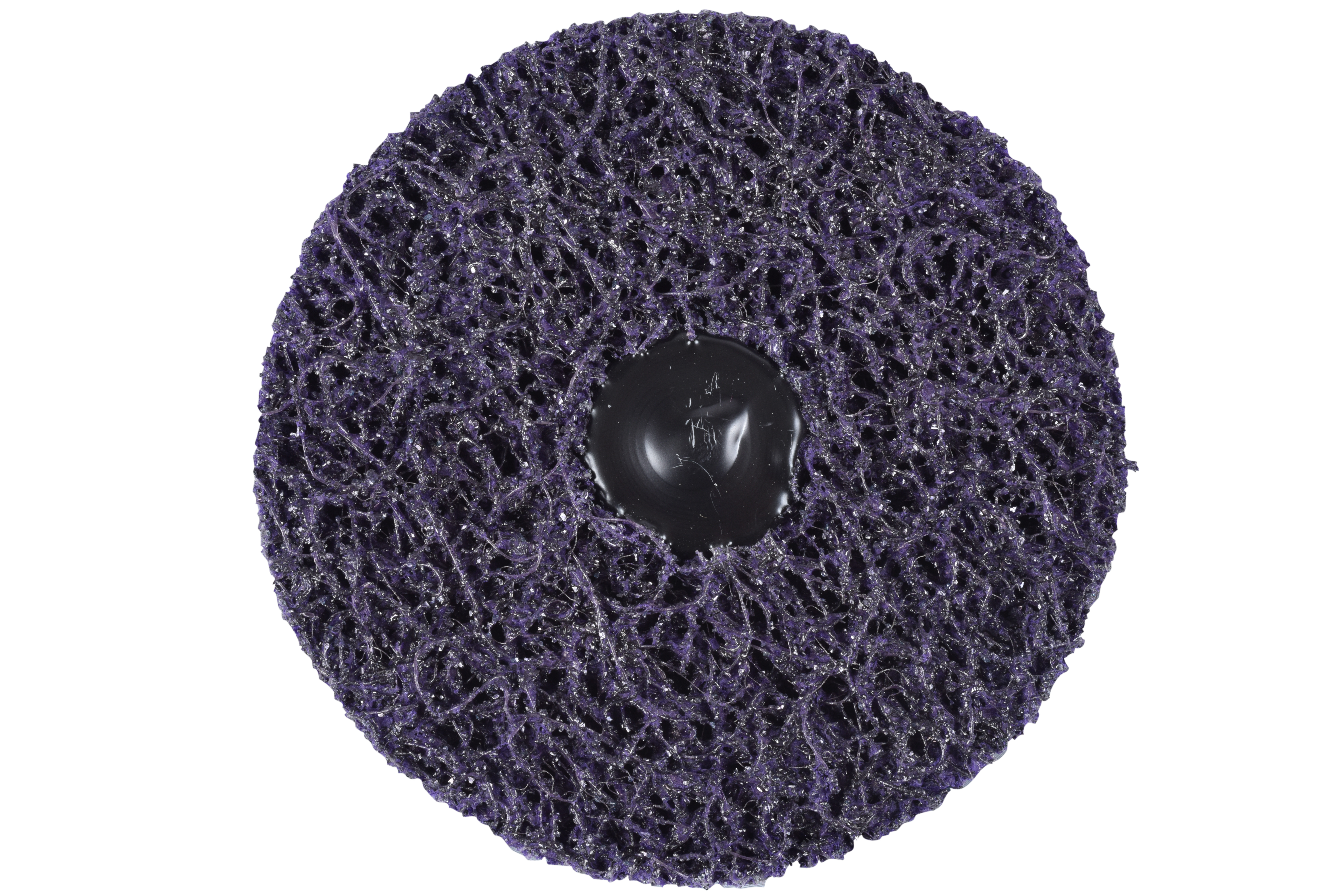 To engineer the Scotch-Brite™ Roloc™+ Clean and Strip XT Pro Disc, silicon carbide mineral is combined with non-woven nylon fibers using resin. Silicon carbide is a very sharp synthetic mineral commonly used in low-pressure applications like paint prep. The resin bond strengthens the disc and gradually breaks down to reveal new fibers and sharp mineral – delivering a consistent cut over the life of the abrasive.