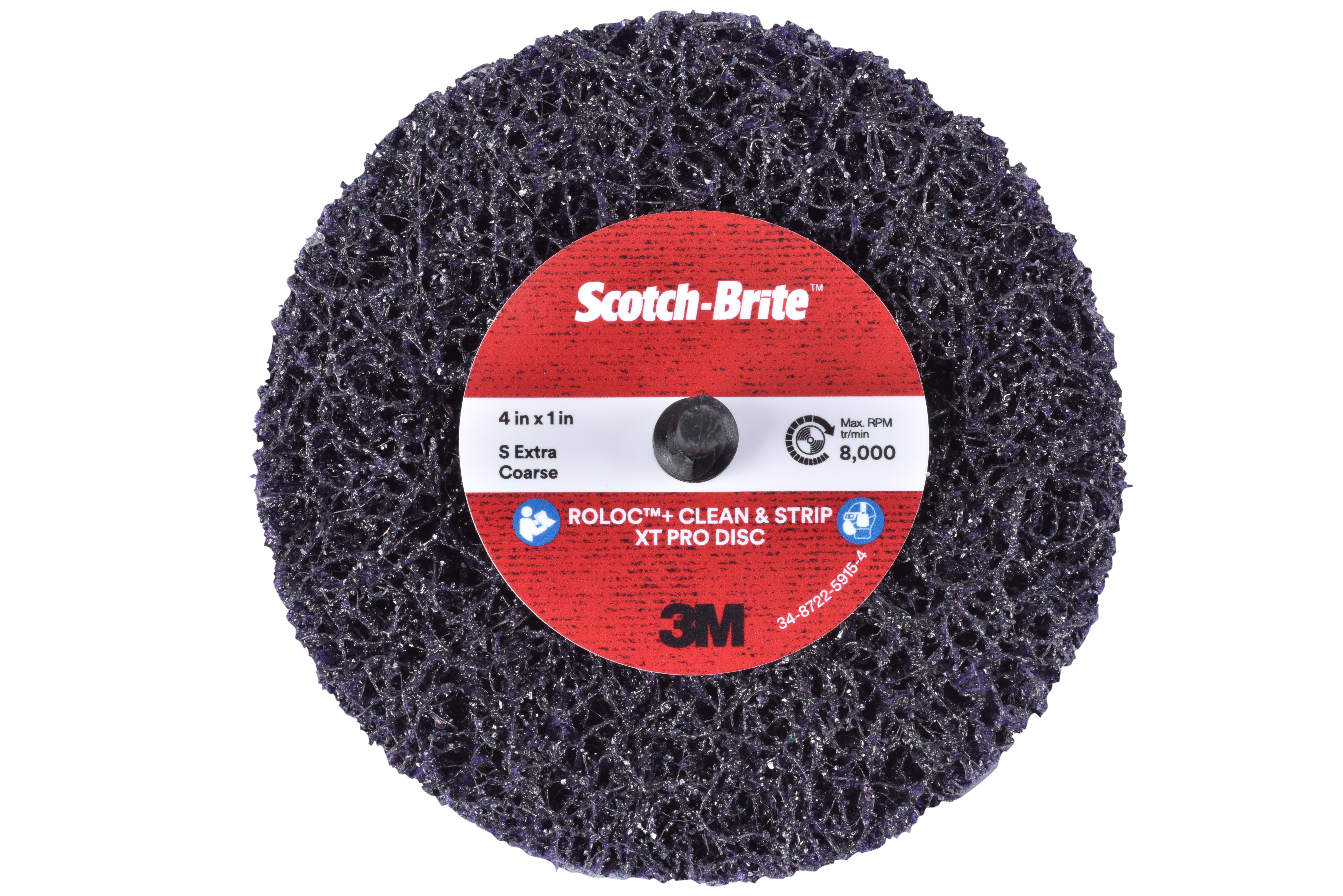 Scotch-Brite™ Roloc™+ Clean and Strip XT Pro Disc, XO-ZR+, SiC Extra Coarse, TR+, Purple, 4 in x 1 in, 2 Ply, 10 ea/Case