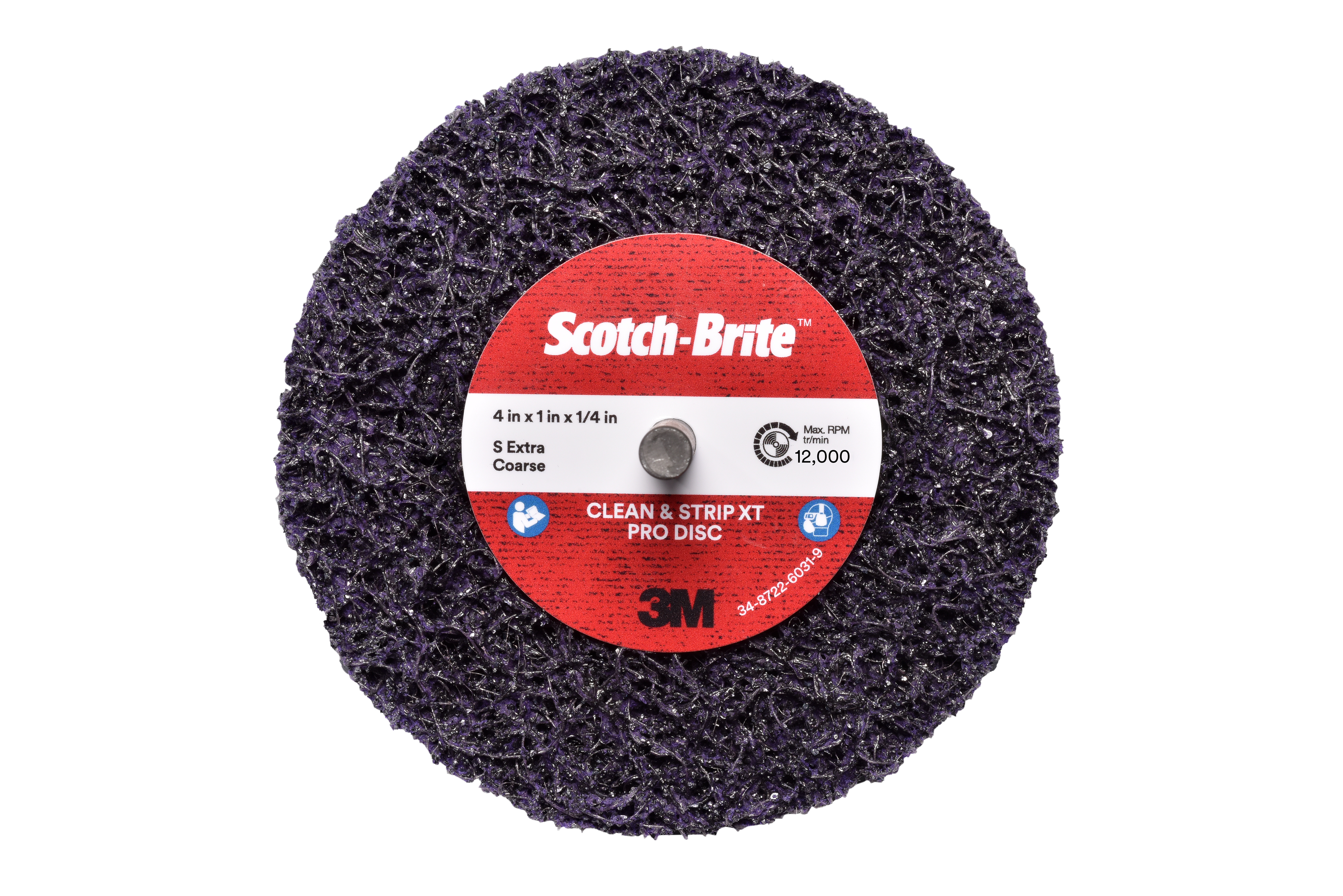 Scotch-Brite™ Clean and Strip XT Pro Disc, XO-DC, SiC Extra Coarse, Purple, 4 in x 1 in x 1/4 in, 2 Ply Shaft Mount, 10 ea/Case